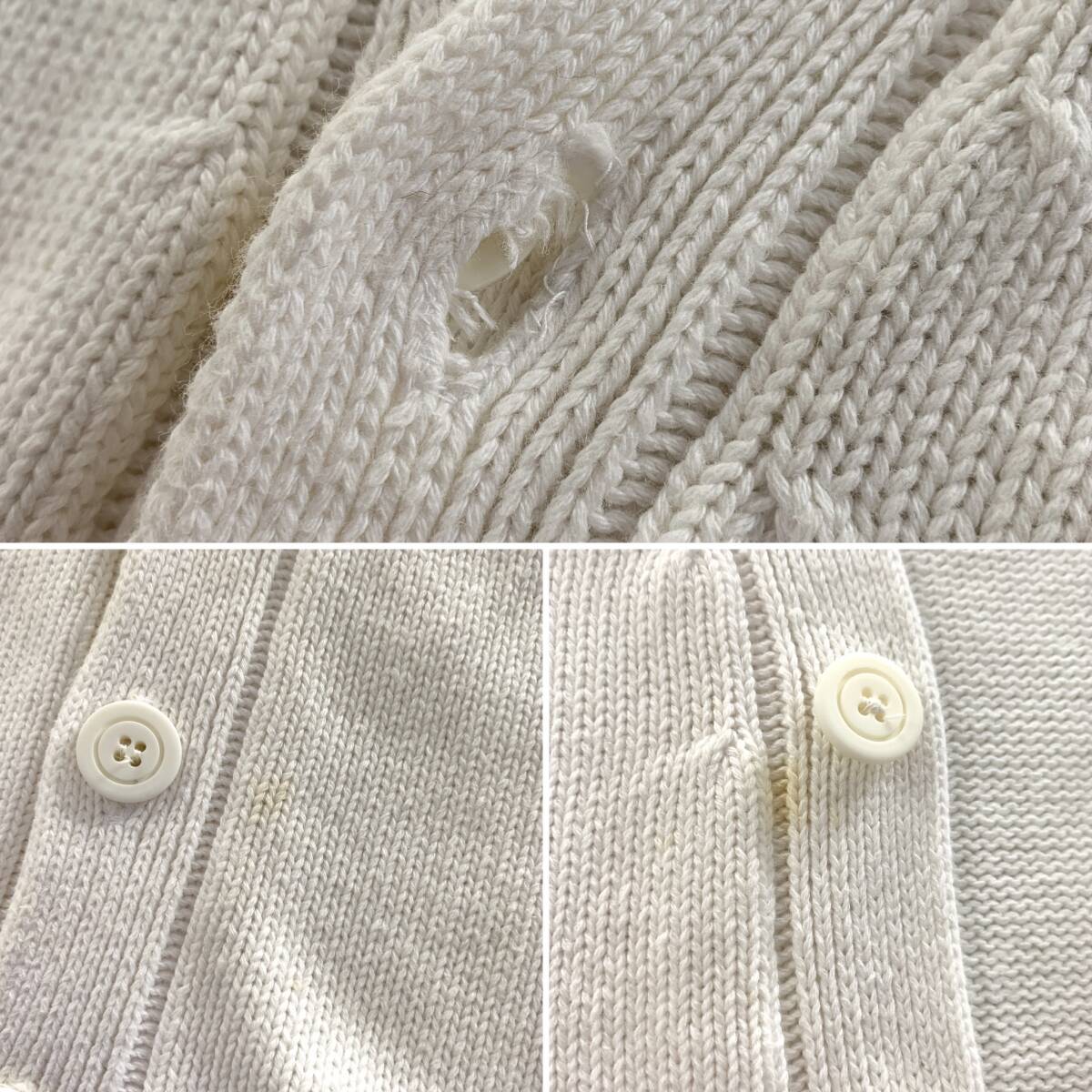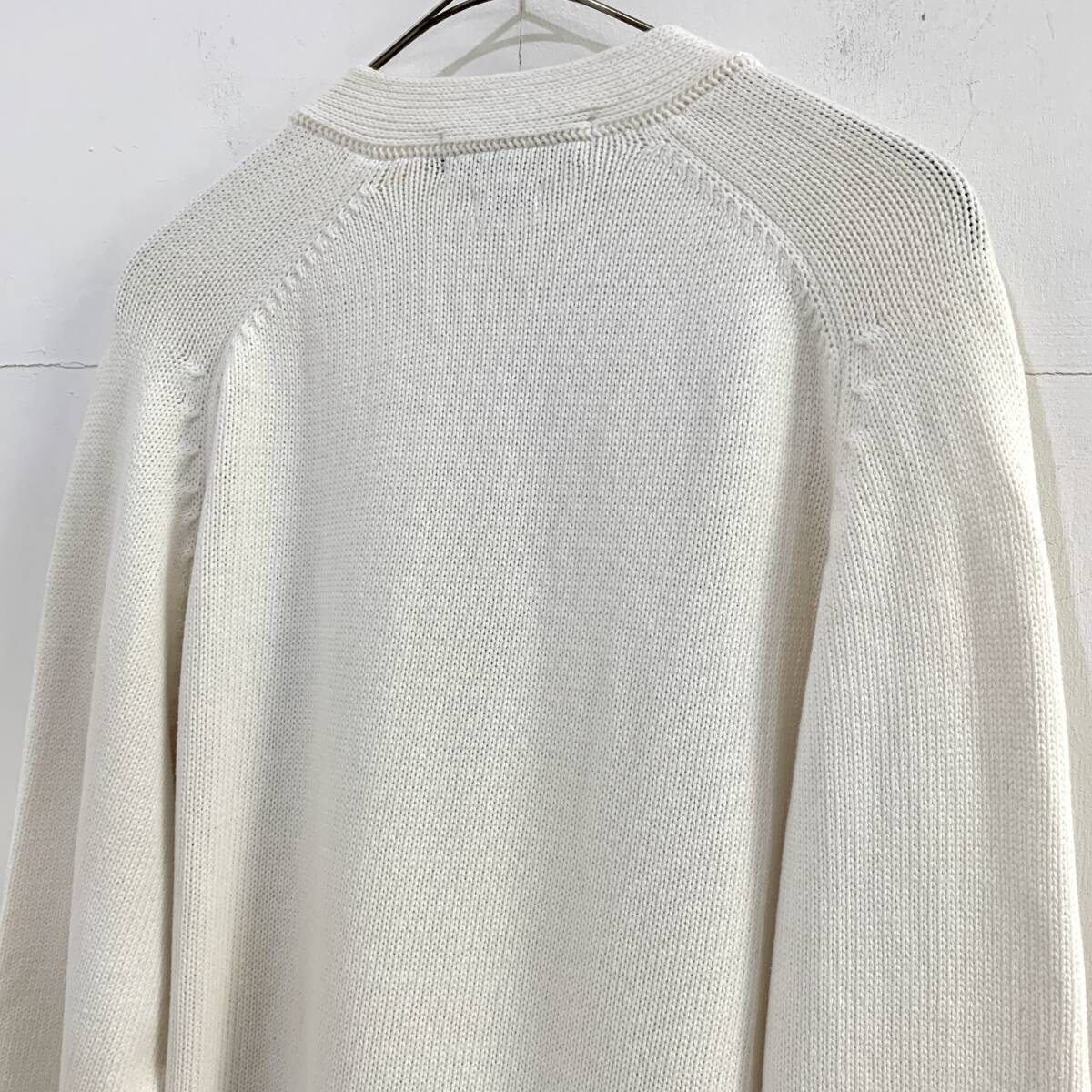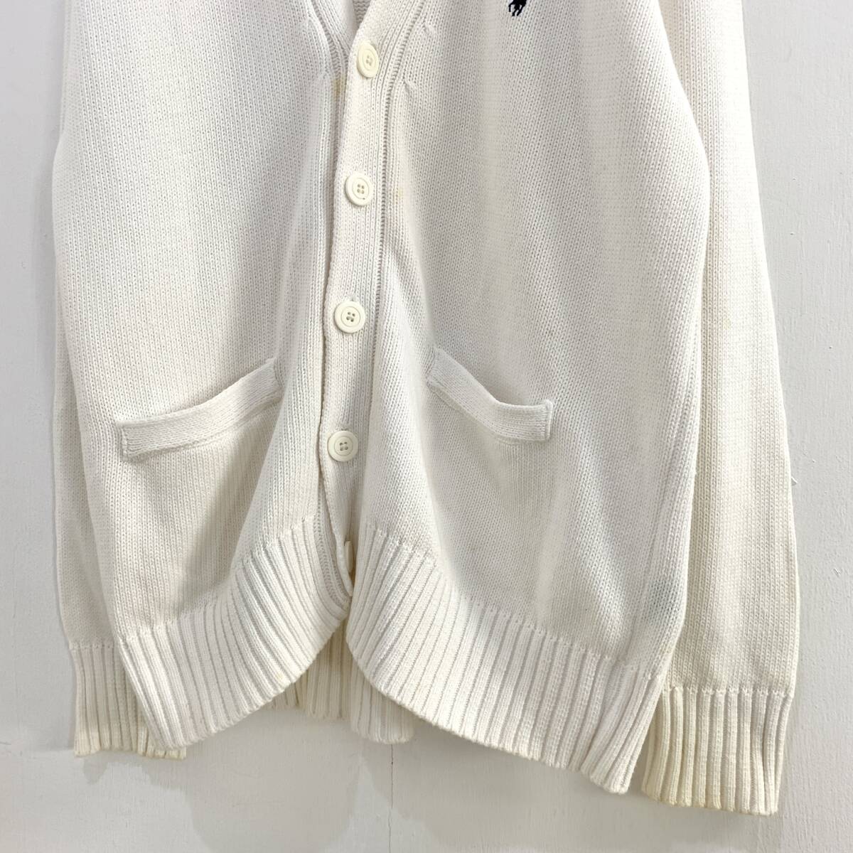 ☆Polo by Ralph Lauren ラルフローレン 90s Vintage Vネックコットンニットカーディガン ホワイト系 サイズL 綿【送料一律/同梱可能】K