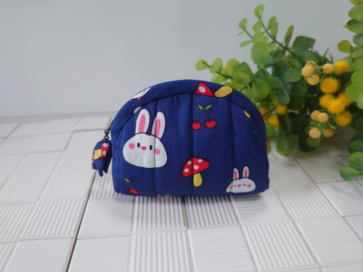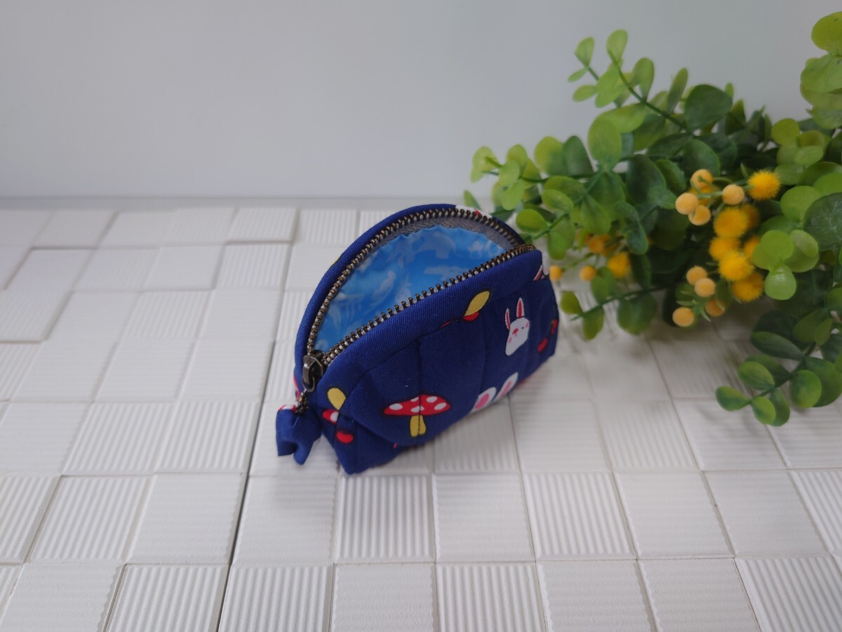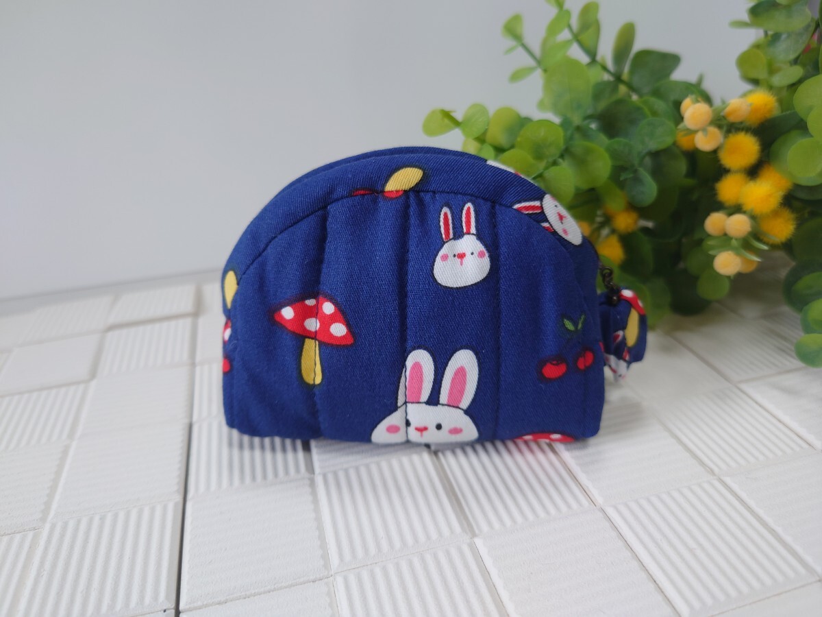 ハンドメイド ぽっちゃりウサギとキノコ柄のミニポーチです!