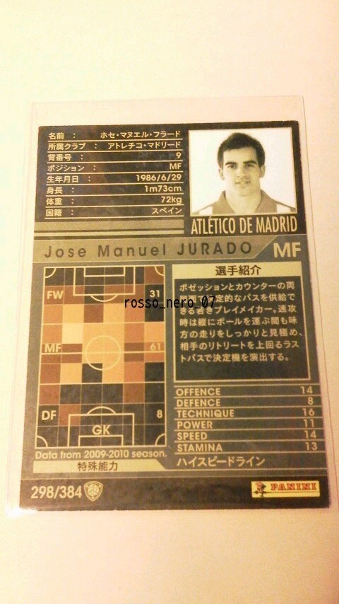 ☆WCCF2009-2010☆09-10☆298☆白☆ホセ・マヌエル・フラード☆アトレチコ・マドリード☆Jose Manuel Jurado☆Atletico de Madrid☆