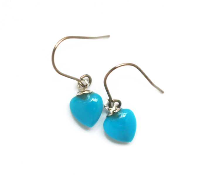 天然宝石 トルコ石ハートシェープ ピアス フックタイプ(チタン金具)6mm