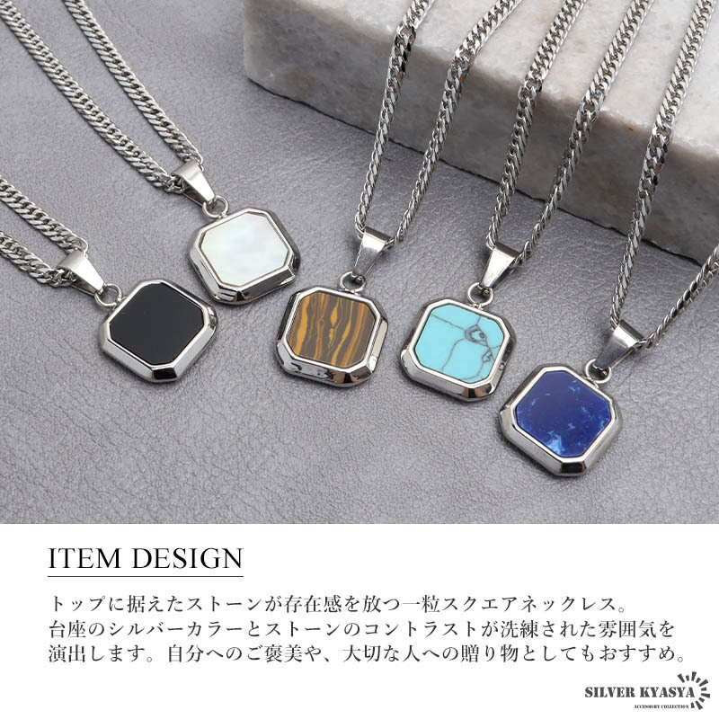 トップに据えたストーンが存在感を放つ一粒スクエアネックレス。台座のシルバーカラーとストーンのコントラストが洗練された雰囲気を演出します。自分へのご褒美や、大切な人への贈り物としてもおすすめ。