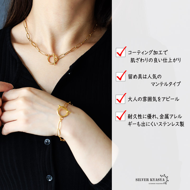 柔らかな丸みを帯びたコマを連ねた細身のチェーンネックレス。留め具は人気のマンテルタイプで着脱もかんたん。シンプルで親しみやすいデザインで、大人な雰囲気をアピールできます。