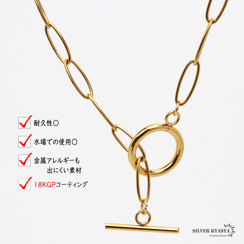 チェーンは頑丈なことで知られるステンレス素材を採用。耐久性はもちろん耐水性も高く水場での着用も可能。つけっぱなしも問題ありません。