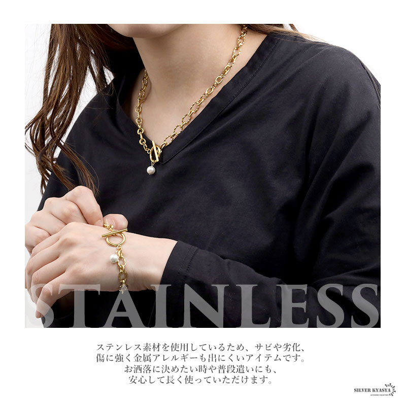 素材には、ステンレスを使用。金属アレルギーも出にくいと言われるアクセサリーに最適の素材です。