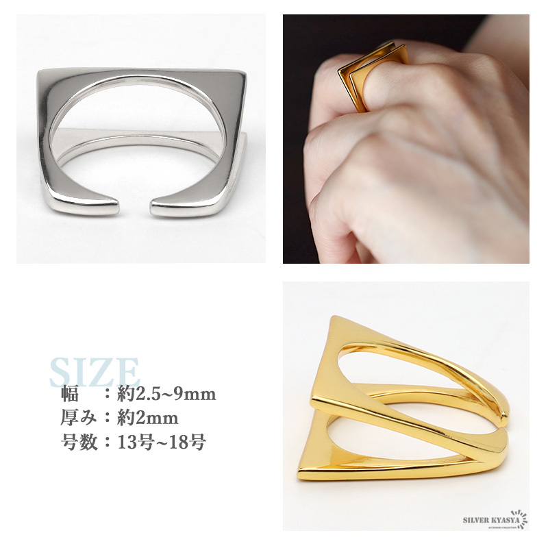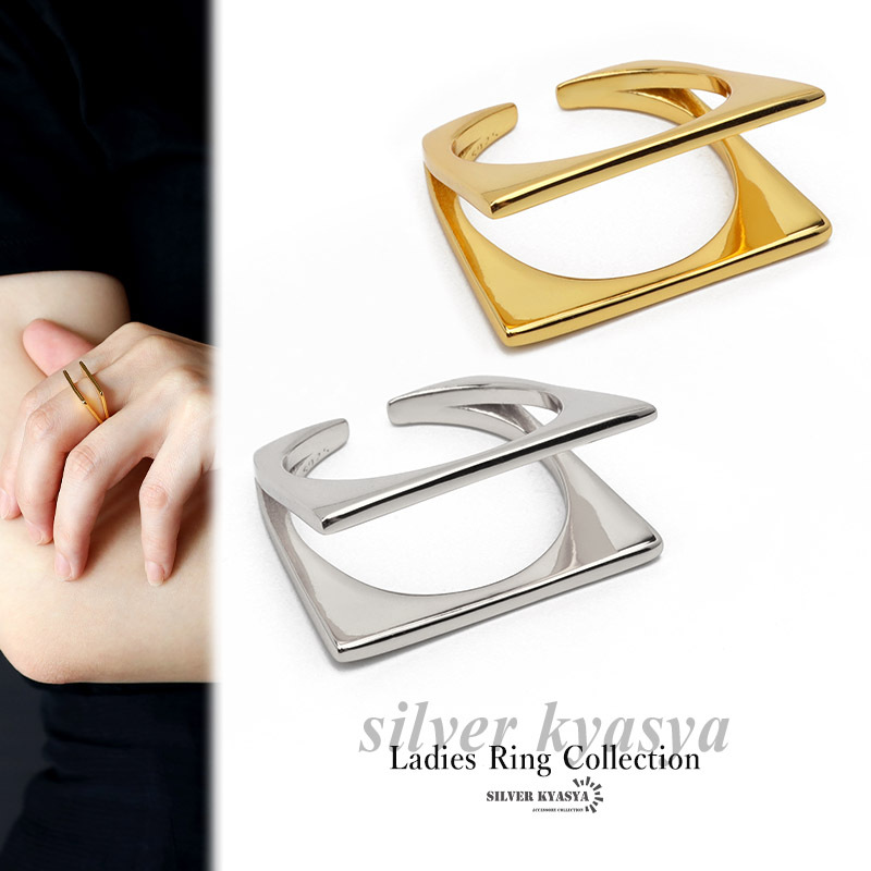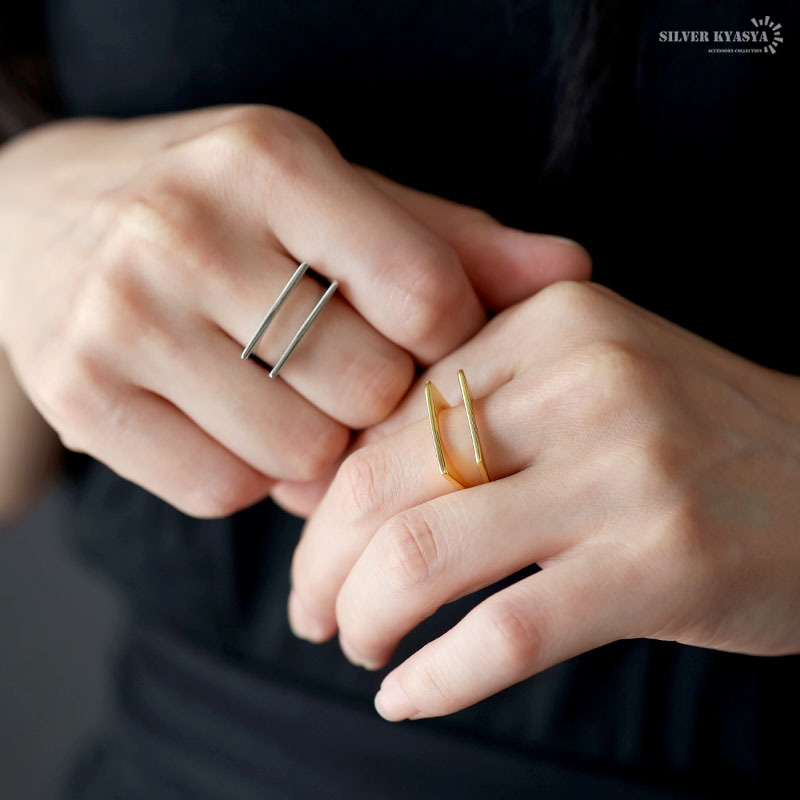 ユニークなフォルムの2連風リング。シンプルだけど目を引く、アクセントに最適なアイテム。