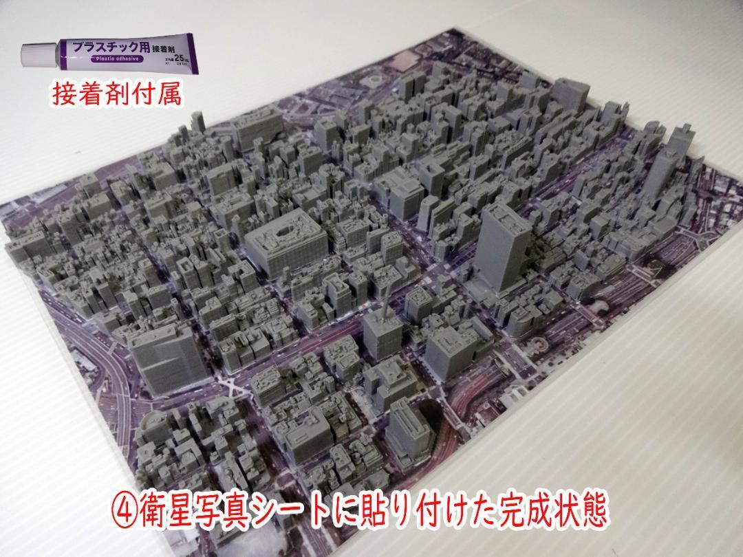 ④衛星写真シートの写真に合わせて建物を貼り付けて完成した状態。