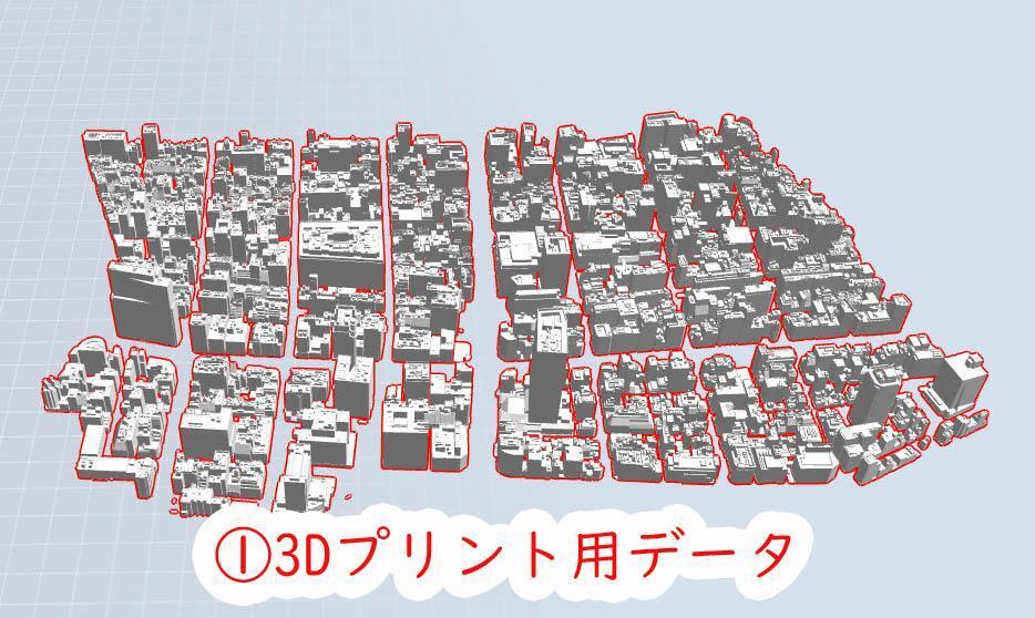 国土交通省の3D都市モデルの整備・活用を目指すProject PLATEAU(プロジェクトプラトー)の建築物データを変換して、高精度3Dプリンターを使い模型化しました。 模型の範囲 銀座を1/4000スケールで模型化しました。 キットの内容 本キットは建物模型、衛星写真シート、接着剤のセットです。約300mm×230mm×90mmのケースに入る範囲を模型化してあります。
