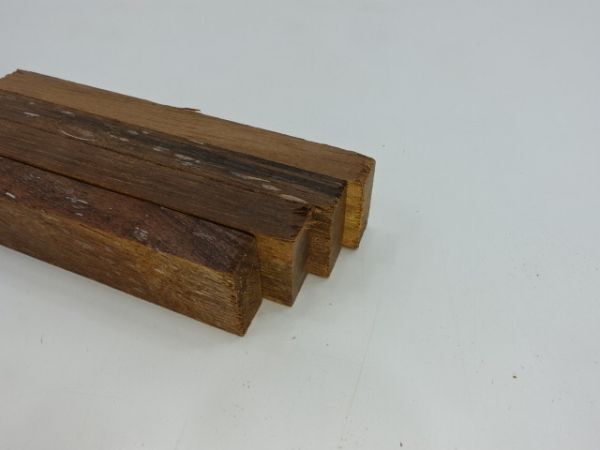 刃物の柄の材料としてこの形状に1次加工して輸入されたものですので寸法にバラつき・誤差有ります。10年以上前に輸入されたものです。2面にプレナーはかかっておりますが厚さ・幅・長さともにバラつきは有ります。木口は直角に切れてないものも有りますし切り口にバリも有ります。削り残しや・角の欠け・水にぬれたシミも有ります。