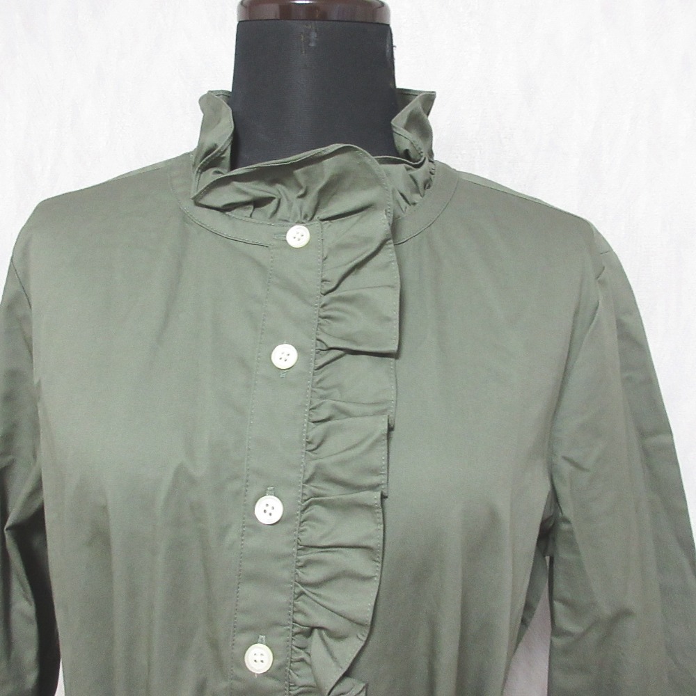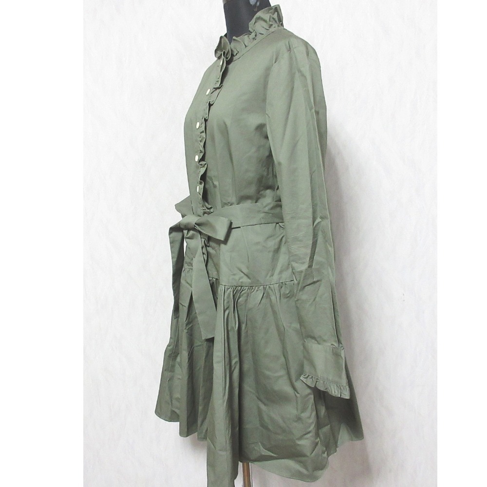 商品名:良品 kate spade ケイトスペード BROOME STREET フロントフリル ワンピース XS カーキ