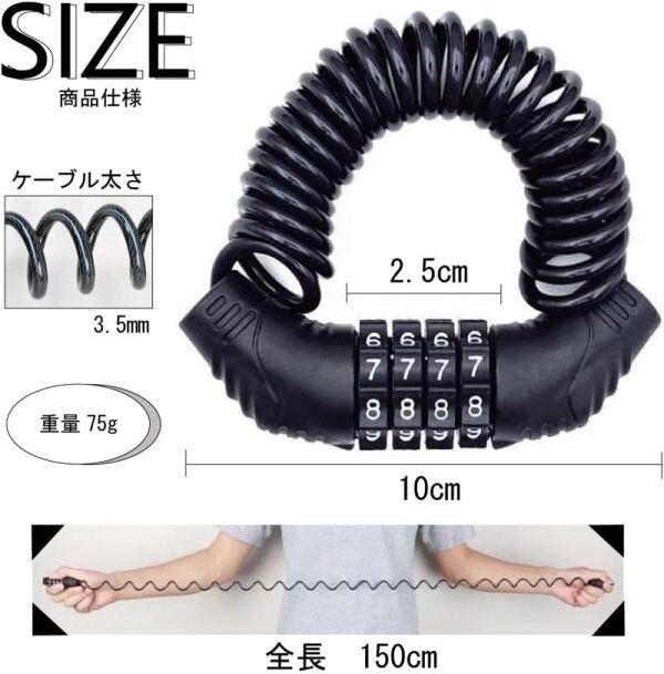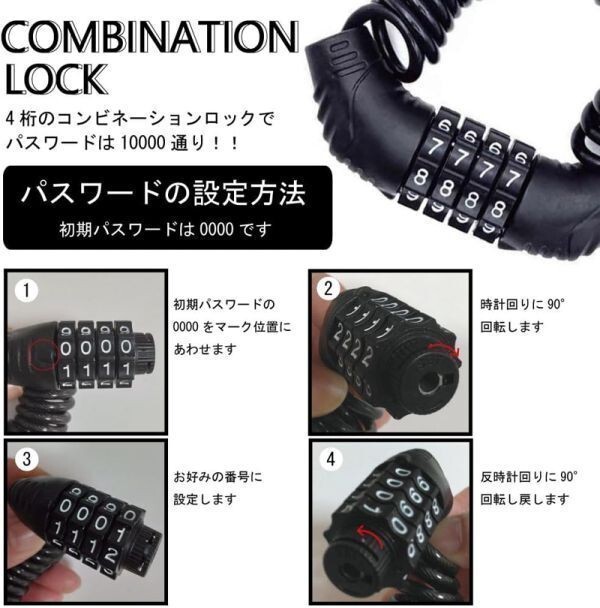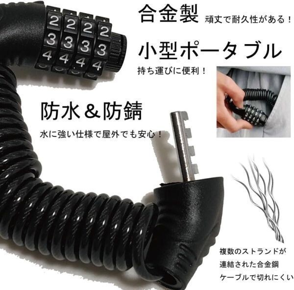 ◆自転車 バイク ヘルメット 鍵 4桁ダイヤル式 ダイヤルロック ワイヤーロック 軽量 コンパクト 持ち運び 150cm ◆