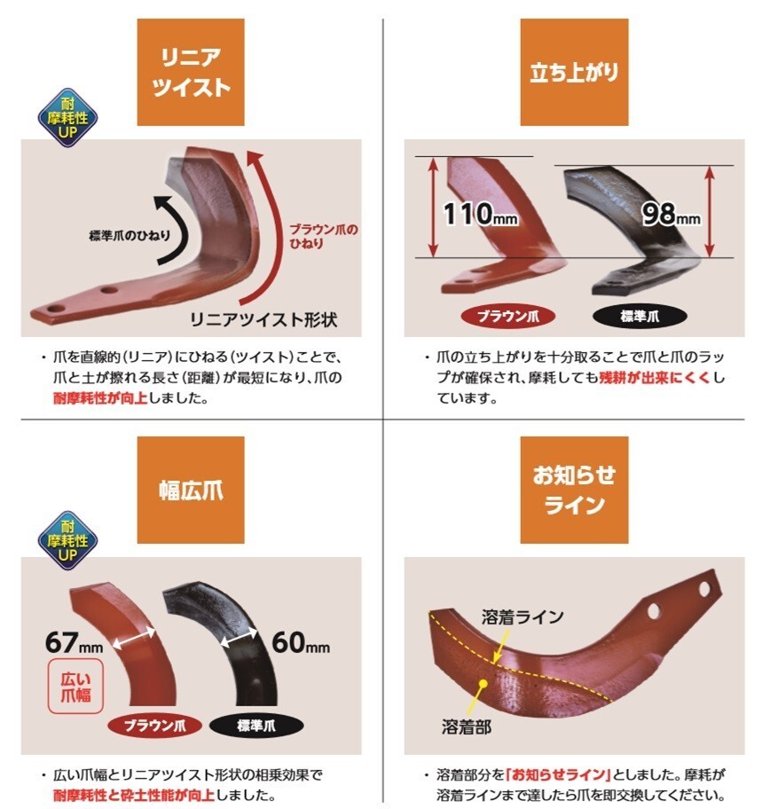 耐摩耗性に優れる高性能新型爪『スーパーブラウン爪』