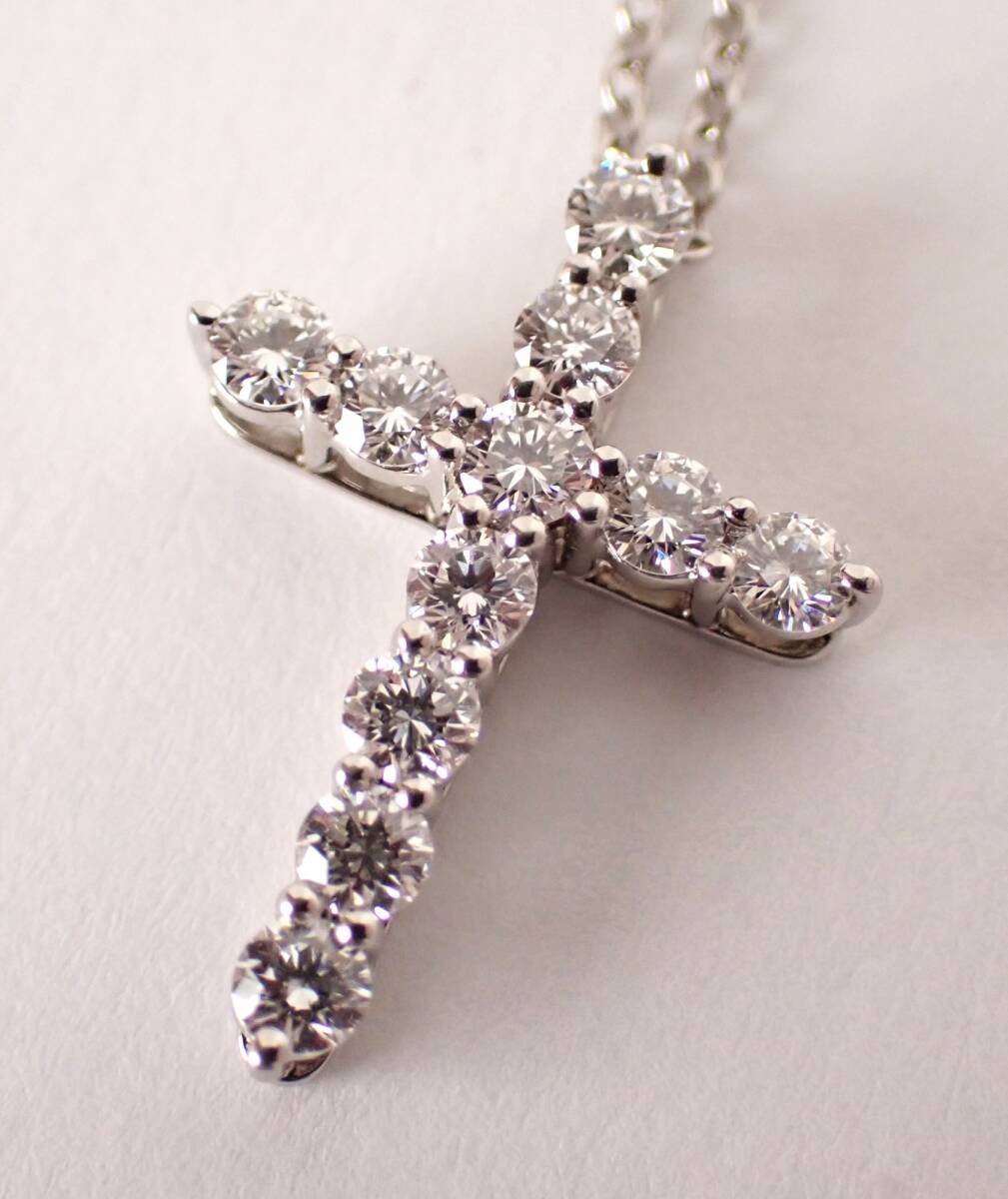 | コメント | ティファニーのスモールクロスダイヤモンドネックレス Pt950 3.3gになります。トップのクロスには、高品位のダイヤモンドを11PCSあしらったデザインになります。僅かなコキズやスレ等ございますが、特に特筆すべき点もなく、まだまだ長くお使いいただける綺麗なお品です。 | |