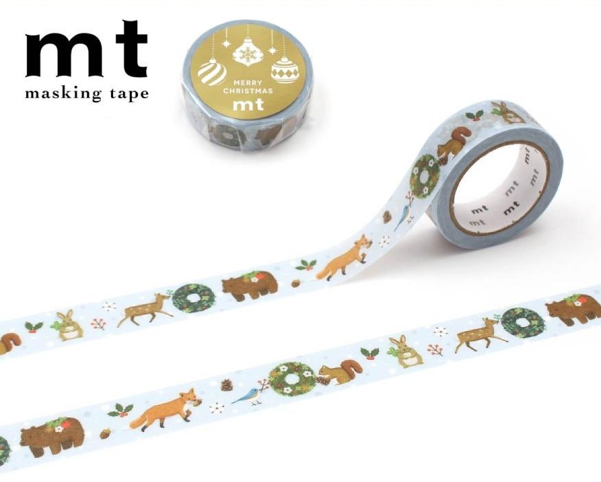 【即決/限定】◆mt クリスマス柄マスキングテープ どうぶつたちのリースづくり◆2023 15mmx7m カモ井加工紙 ラッピング // MTCMAS147