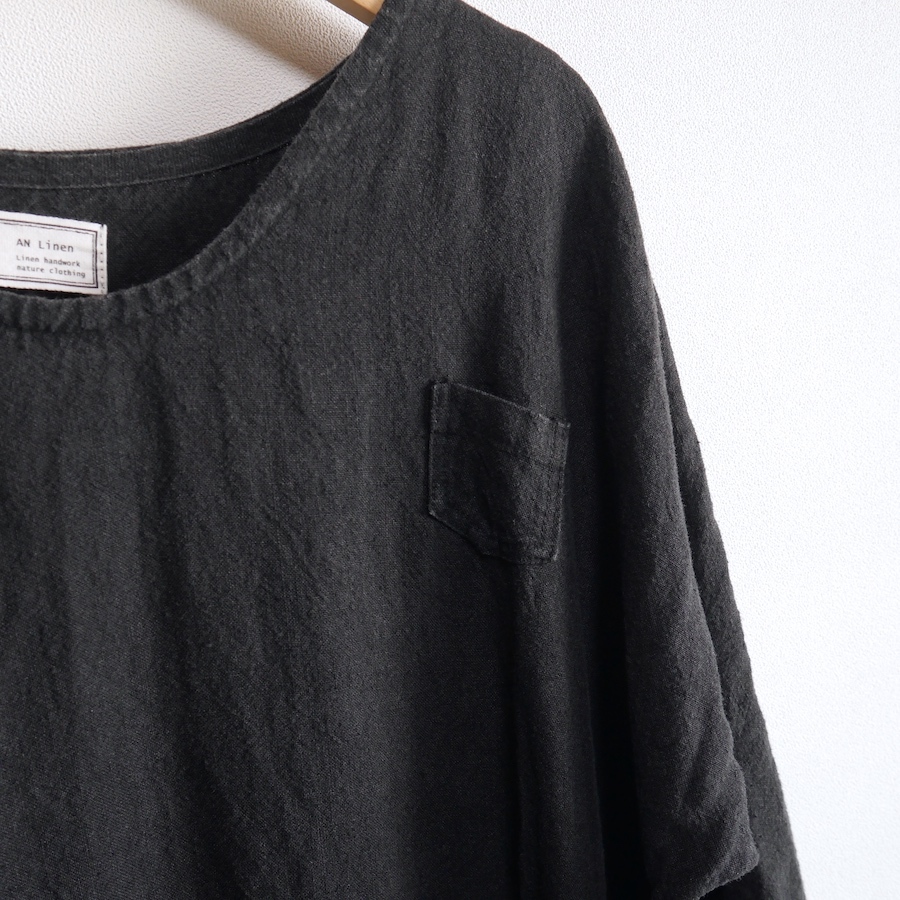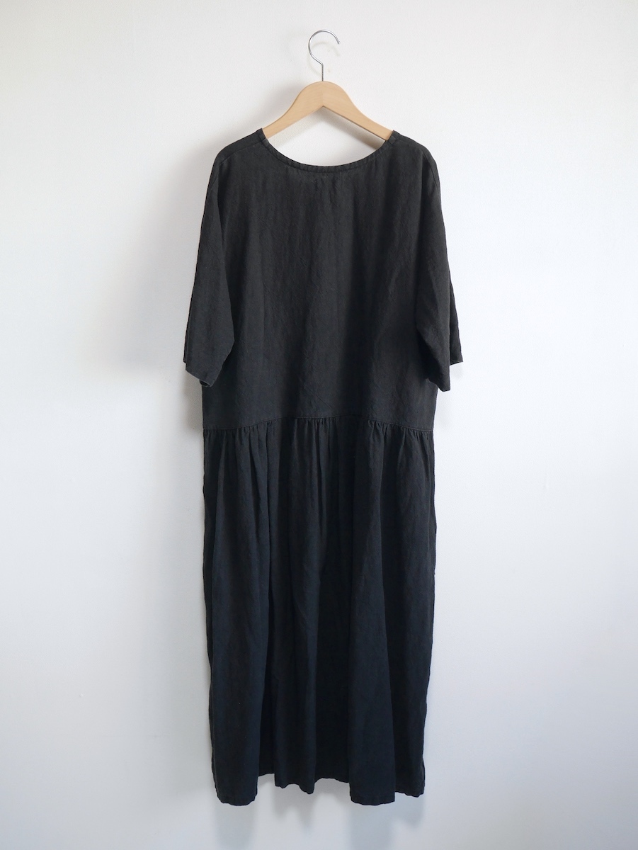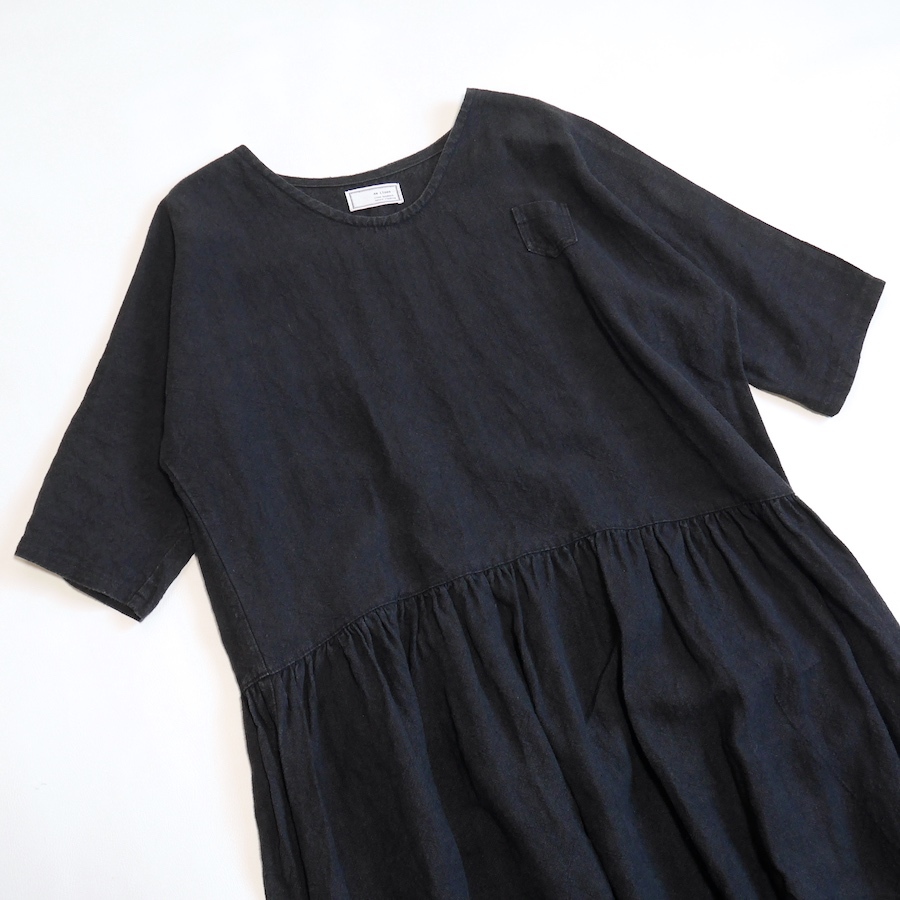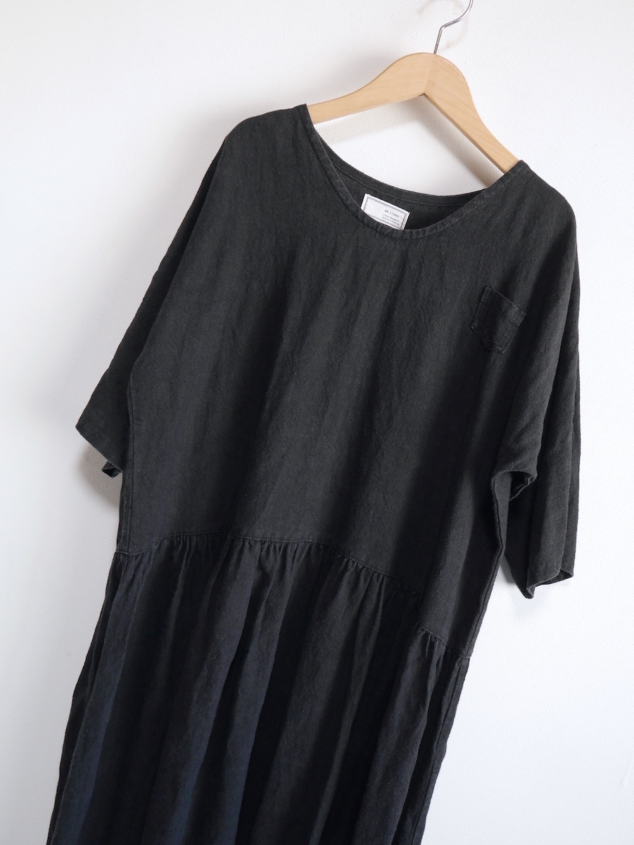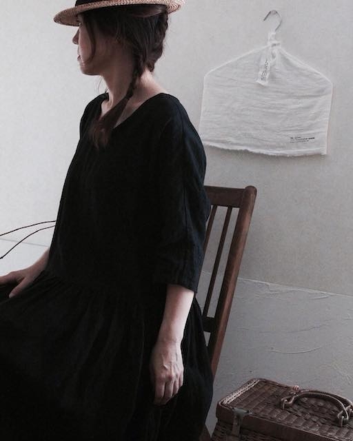 きぬがわあゆみさんの手がけるブランド、AN Linenの五分袖ワンピースです。 guriという名前だったと思います。 一枚でゆったりと着られるシルエットで流行りに関係なく、末長く着ていただける一着です。
