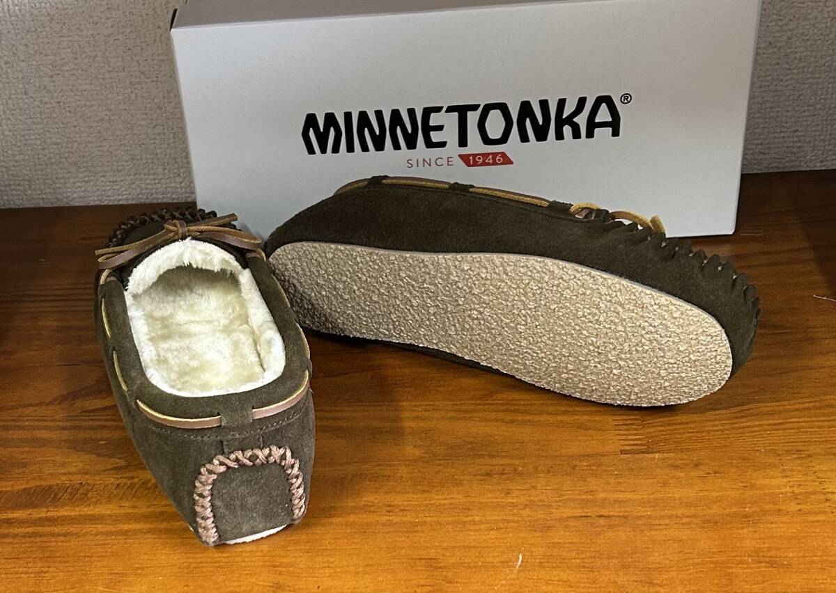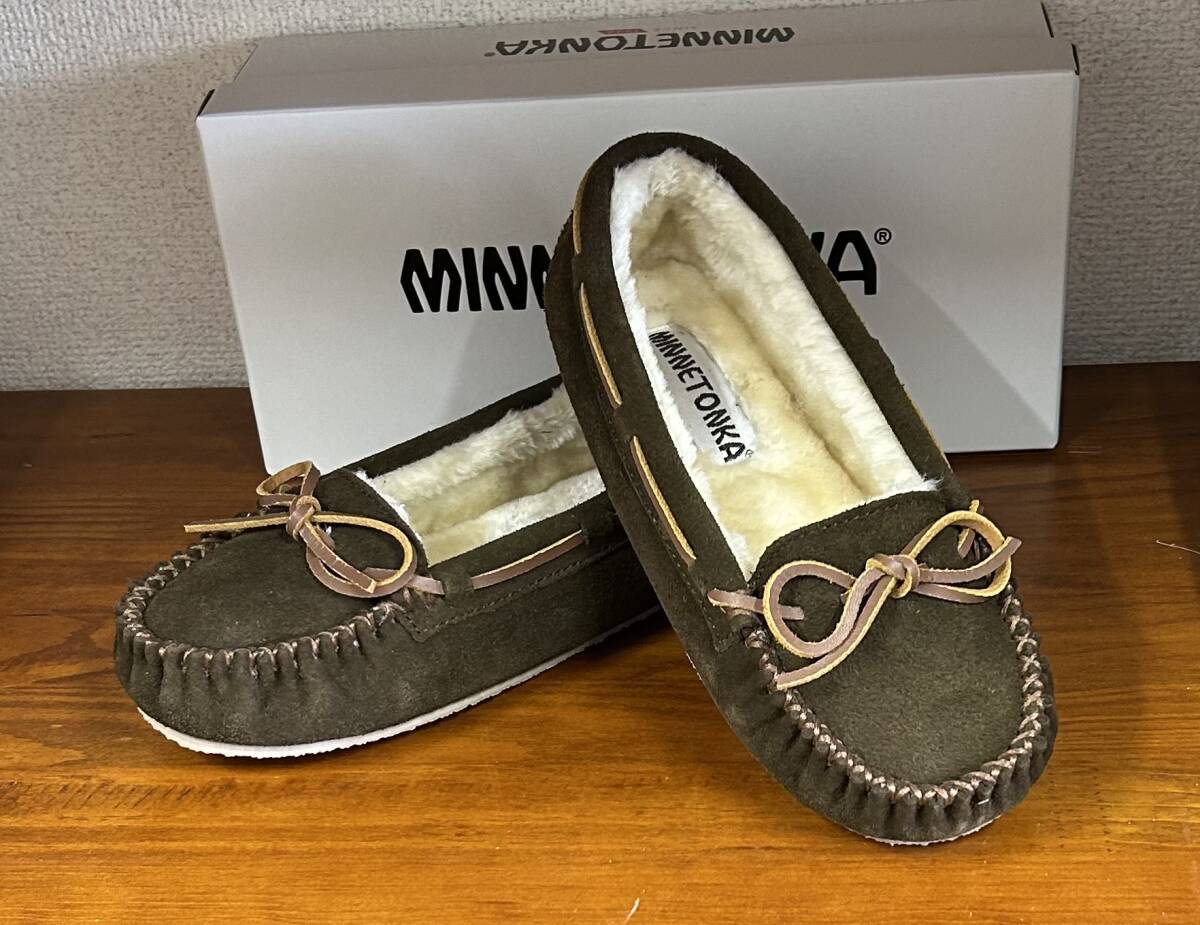 新品☆ミネトンカの高級スエード本革製ムートンモカシン☆焦茶☆US6★23.5㎝