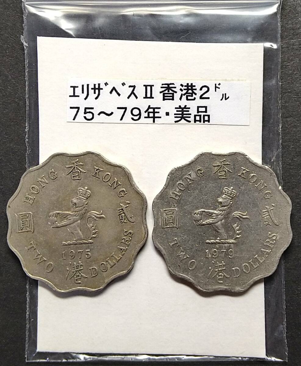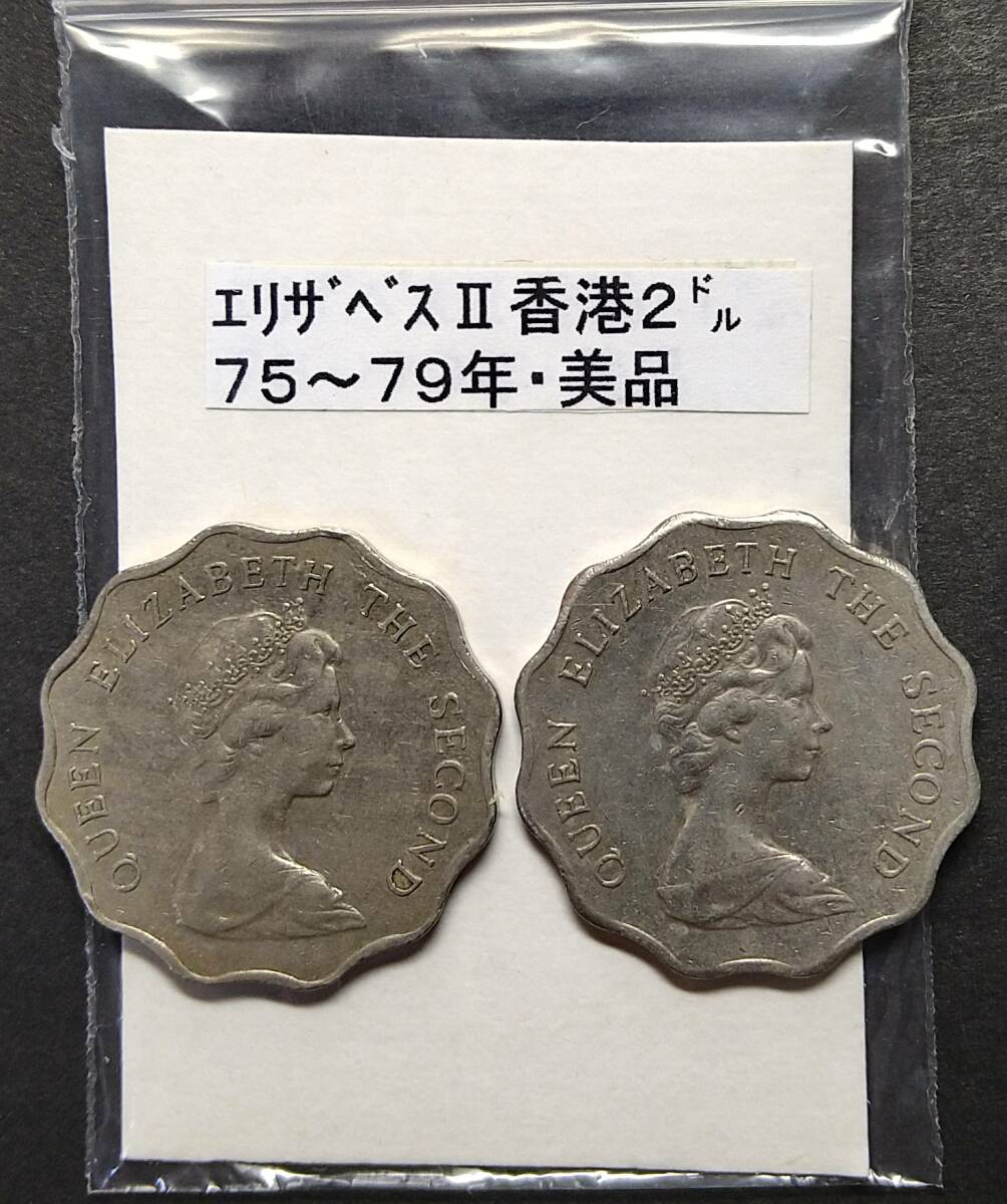 香港・2ドル硬貨・1975年・1979年(2枚)【中古】です。
