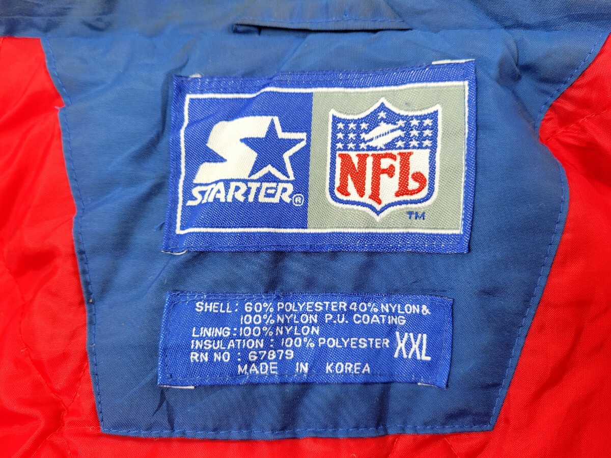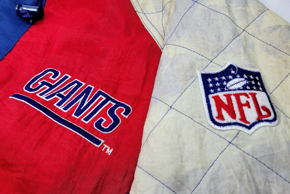 90年代製ビンテージ、STARTER社製、NFLジャイアンツのナイロン中綿ジャケットになります。