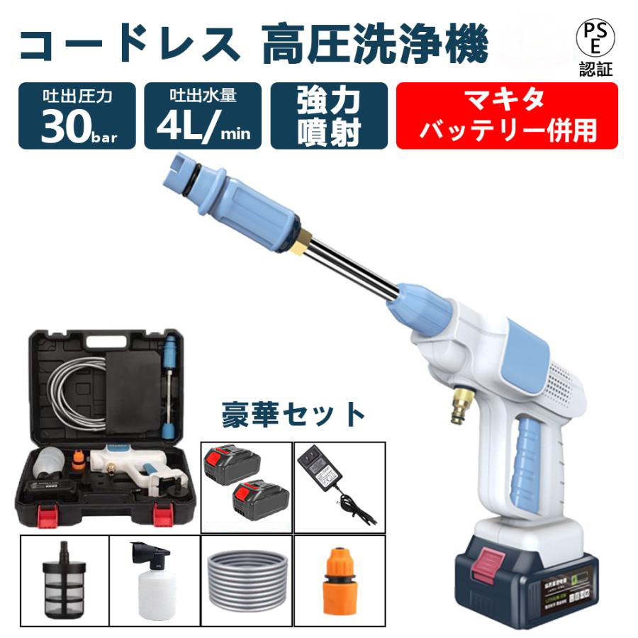 即納 高圧洗浄機 コードレス 充電式 マキタ18Vバッテリー対応 バッテリー2枚き 強力 家庭用 洗車タオル 小型 電動工具 洗車 大掃除 自吸式