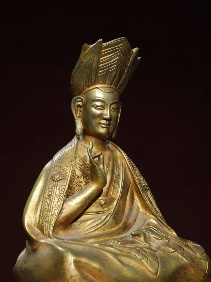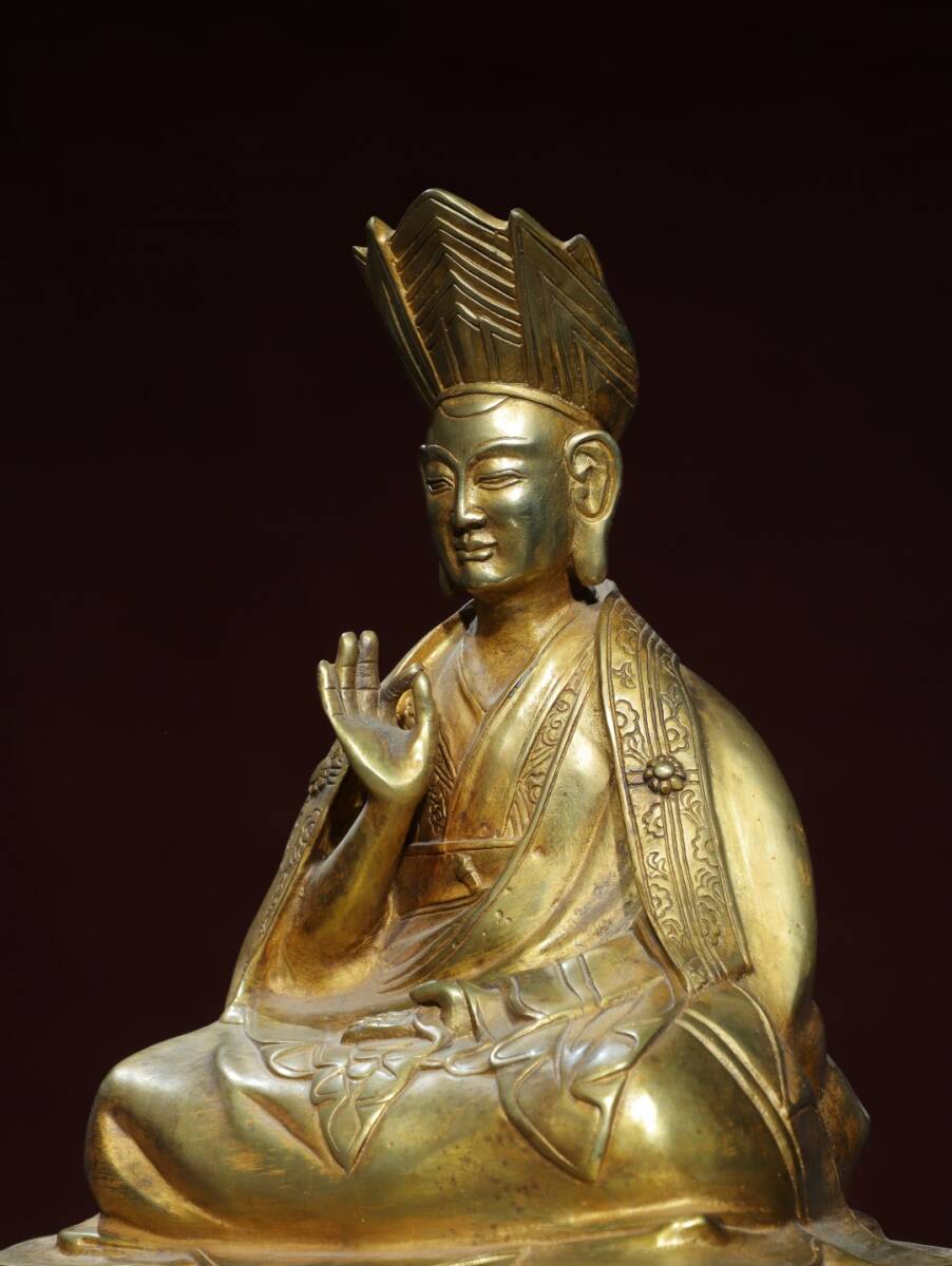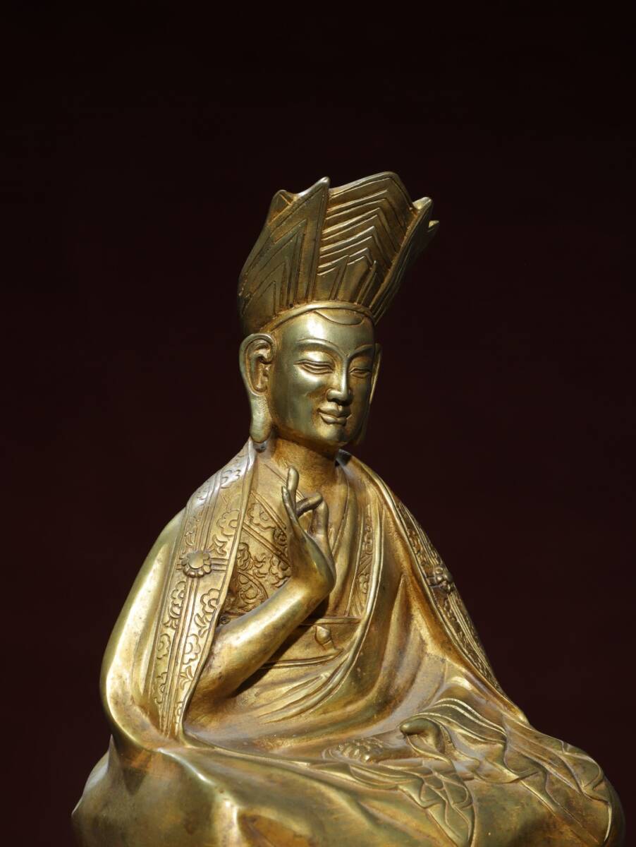 旧蔵 清 乾隆年製 藏傳密宗【上師仏】仏教 仏像 奉納されていた 供養品 銅製品 銅器 極細工 中国古玩 古美術 骨董品 202-04