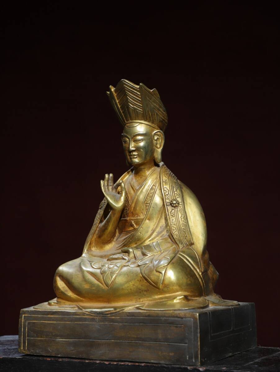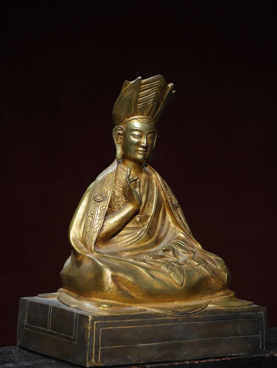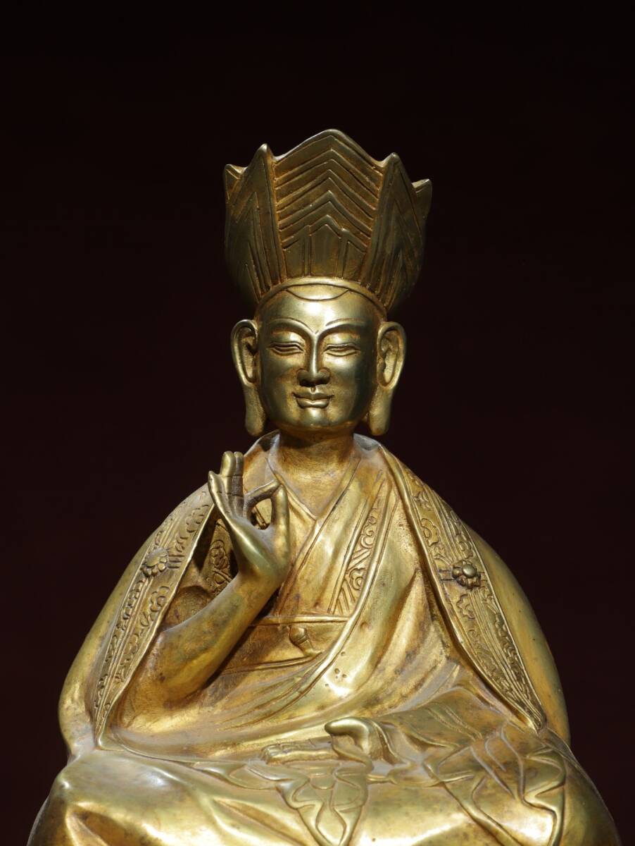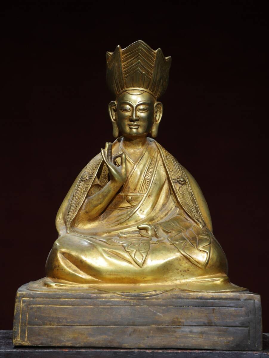 旧蔵 清 乾隆年製 藏傳密宗【上師仏】仏教 仏像 奉納されていた 供養品 銅製品 銅器 極細工 中国古玩 古美術 骨董品 202-04