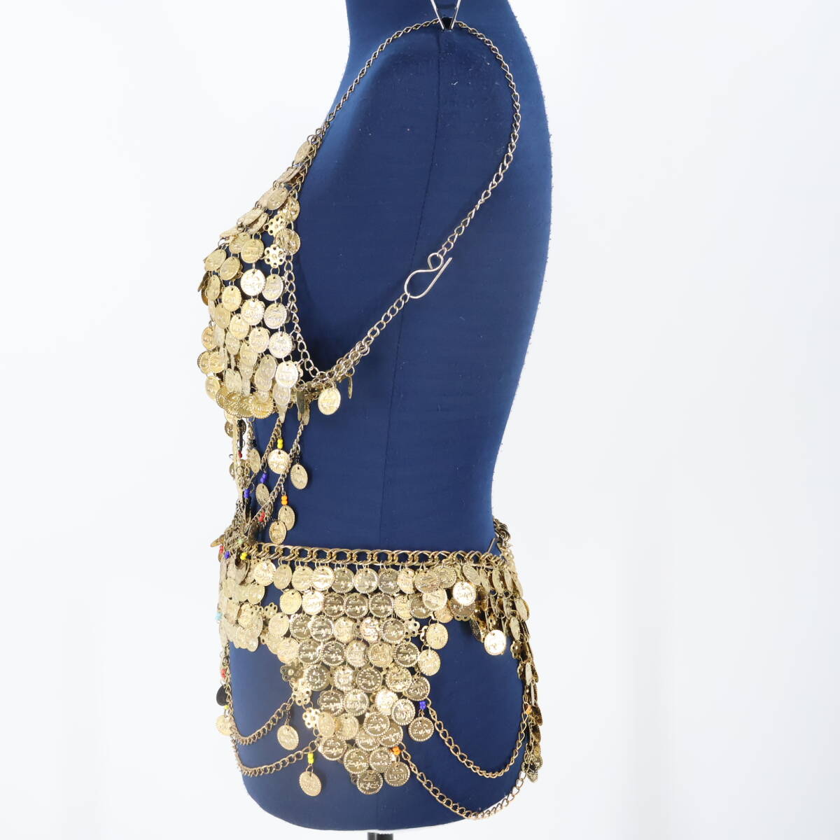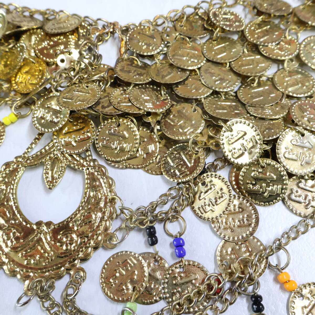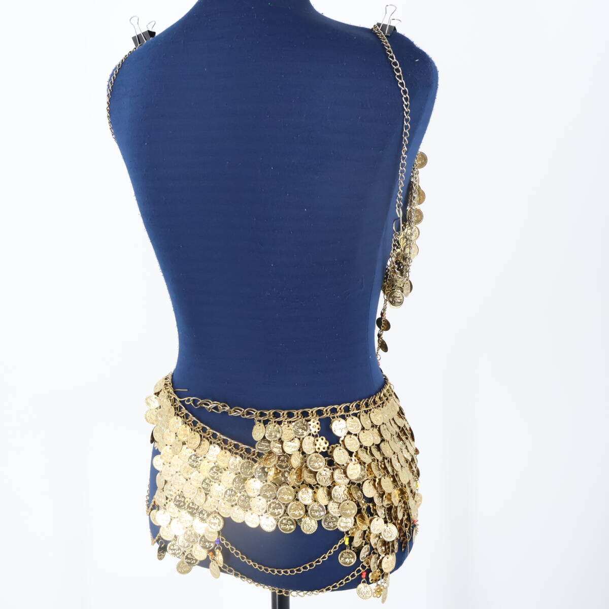 | 商品説明 | 【商品名】ベリーダンス オリエンタル衣装 ブラトップ 【サイズ】 平置き実測:両端長さ約33cm、幅約23cm、重さ280g 【仕様】 ・フック仕様 ベルト 【サイズ】 平置き実測:ウエスト約59cm、幅約8~16cm、重さ496g 【仕様】 ・フック仕様 ------------------------------------ 【ポイント】 ▽全身ゴールドコイン ▽動くと音が出る ▽サイズは体に合わせてフックで留めるため自由に ------------------------------------ 【撮影時使用トルソー:女性用トルソー9号(一般的に使用されるサイズです)】 トルソーサイズ詳細 肩幅約37cm、バスト約88cm、ウエスト約66cm、ヒップ約89cm |