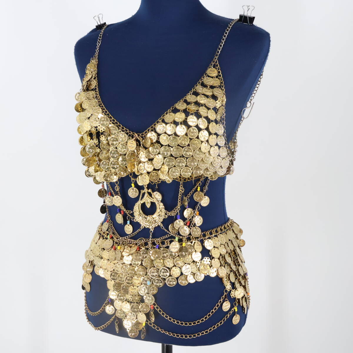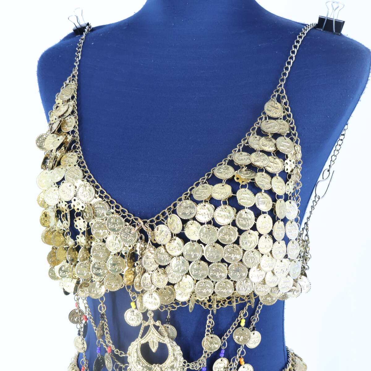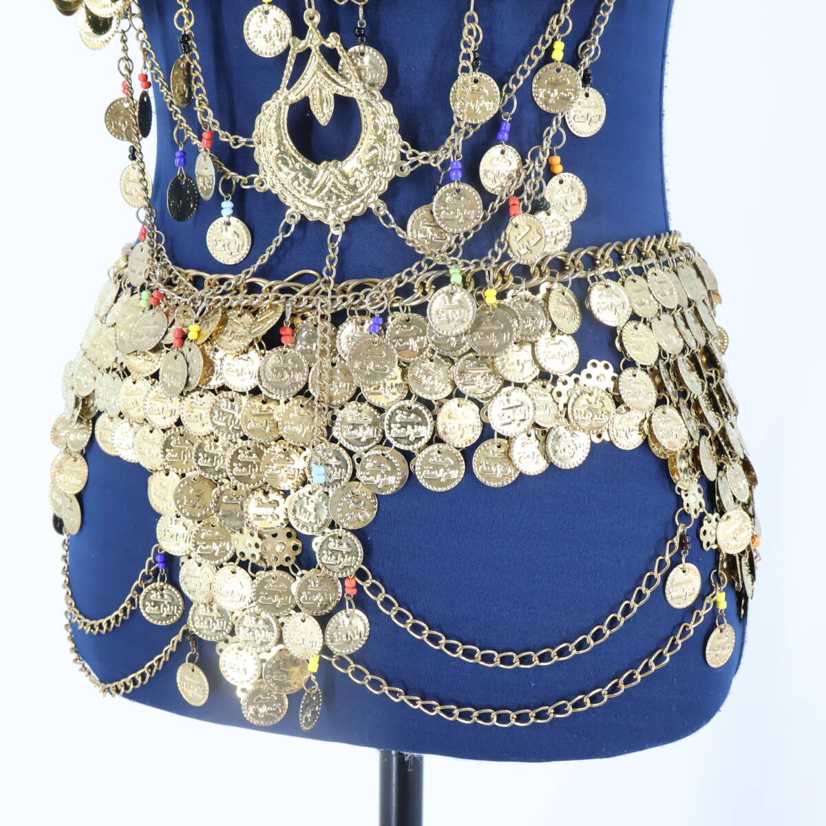 | 商品説明 | 【商品名】ベリーダンス オリエンタル衣装 ブラトップ 【サイズ】 平置き実測:両端長さ約33cm、幅約23cm、重さ280g 【仕様】 ・フック仕様 ベルト 【サイズ】 平置き実測:ウエスト約59cm、幅約8~16cm、重さ496g 【仕様】 ・フック仕様 ------------------------------------ 【ポイント】 ▽全身ゴールドコイン ▽動くと音が出る ▽サイズは体に合わせてフックで留めるため自由に ------------------------------------ 【撮影時使用トルソー:女性用トルソー9号(一般的に使用されるサイズです)】 トルソーサイズ詳細 肩幅約37cm、バスト約88cm、ウエスト約66cm、ヒップ約89cm |
