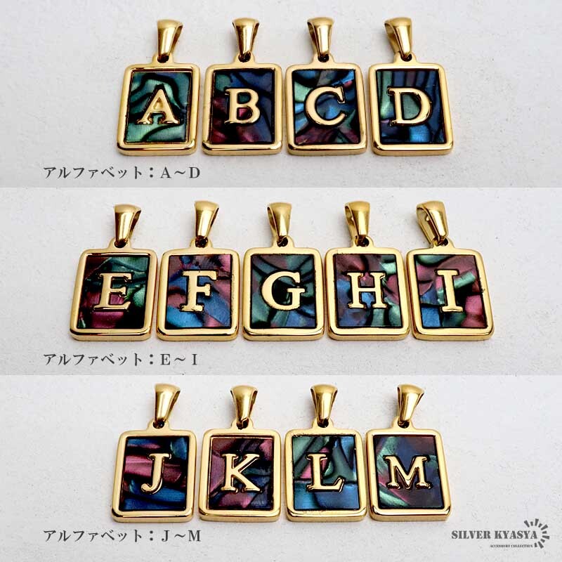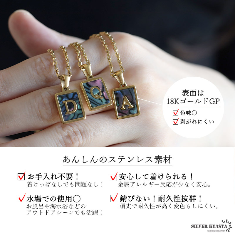 スクエア型プレートにアルファベットをあしらったネックレス。オーロラのような美しい色彩にゴールドが映えるアイテムです。自分へのご褒美や、大切な人への贈り物としてもおすすめ。