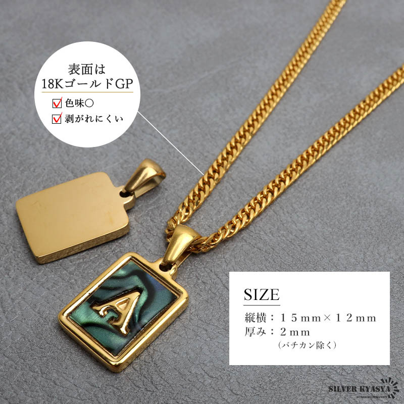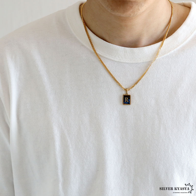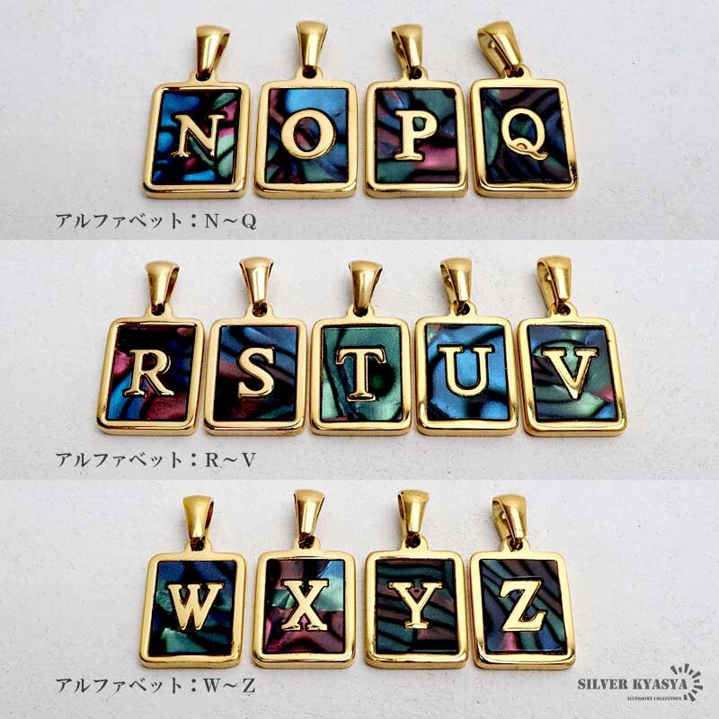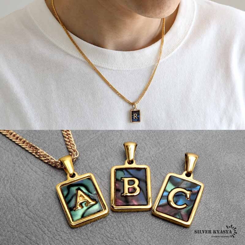 スクエア型プレートにアルファベットをあしらったネックレス。オーロラのような美しい色彩にゴールドが映えるアイテムです。自分へのご褒美や、大切な人への贈り物としてもおすすめ。