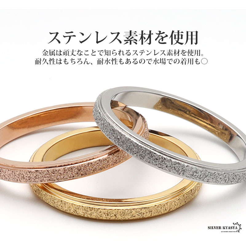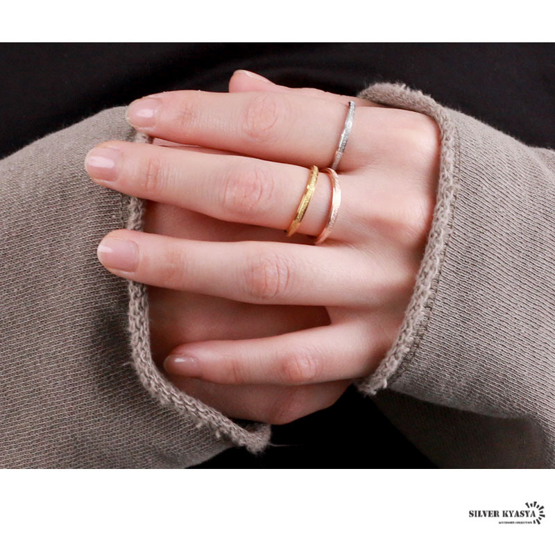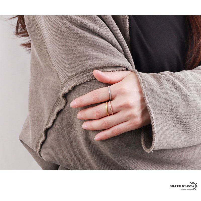 リングの表面に細かい凹凸をつけて、星屑のような輝きを放つデザインに仕上げました。シンプルなので重ね付けにも最適な使い勝手の良いアイテムです。