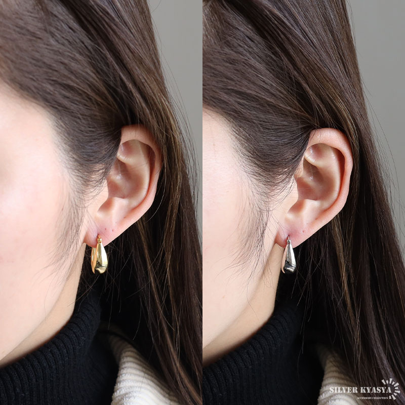 | 商品概要 | ■ITEM DETAIL 縦長のぷっくりとしたシルエットが上品なフープピアス。ゴールド/シルバーの2カラーから選べます。 ■SILVER925素材 シルバー925は、銀含有率(純度)92.5%を示し、一般的に純銀として扱われています。サビや劣化等がほとんどなく金属アレルギーも出にくいとされており、アクセサリーとして重宝される金属です。 |
