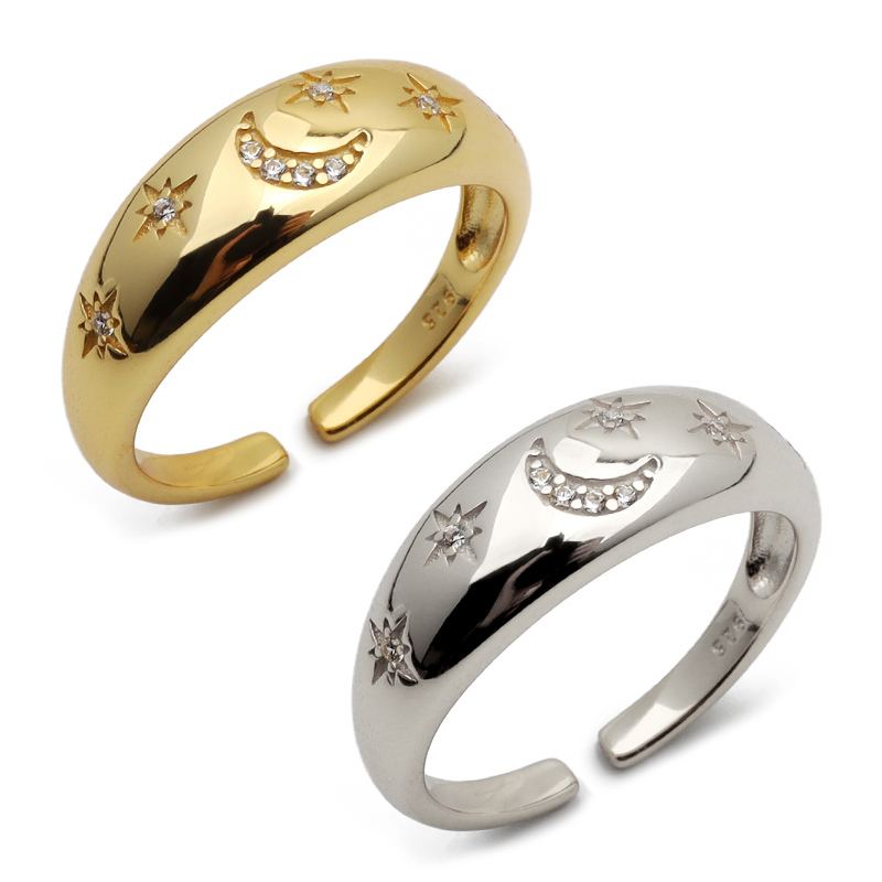 ぷっくりしたフォルムに、天体モチーフと埋め込まれたCZが可愛いリング。