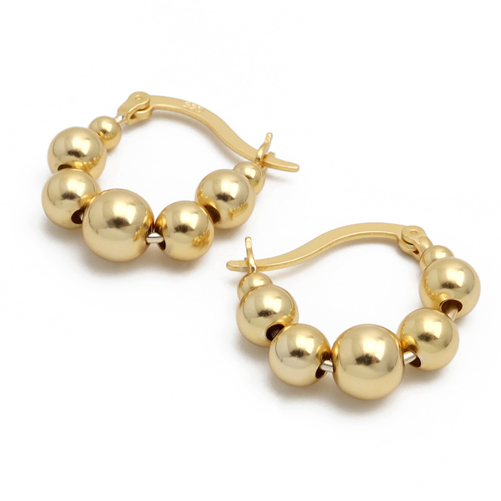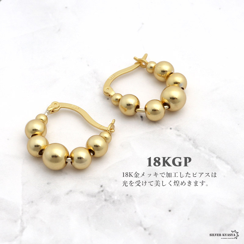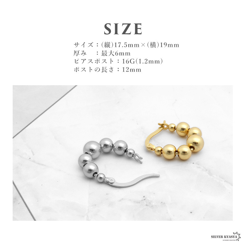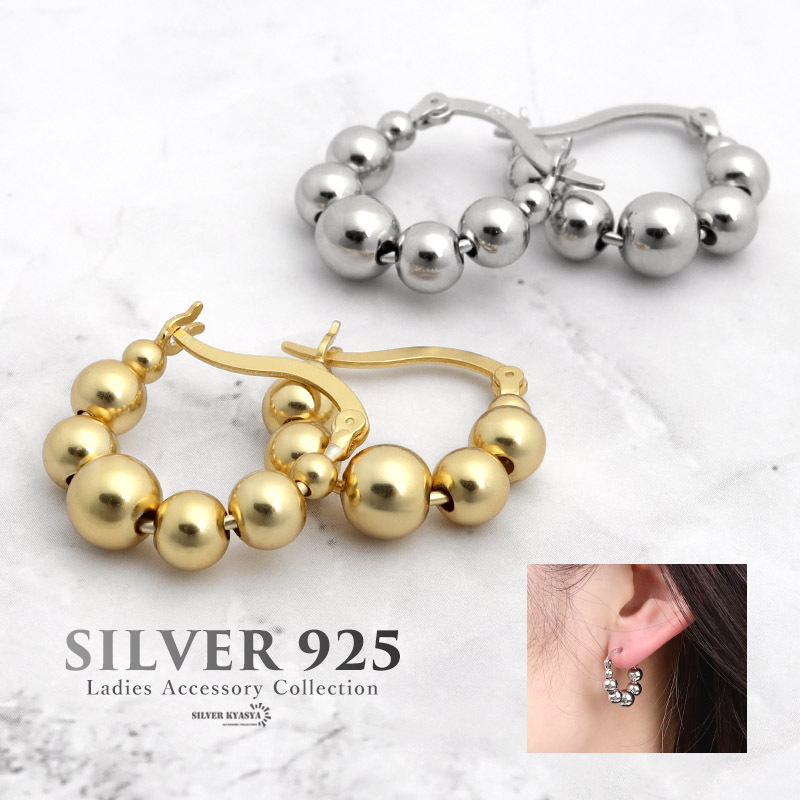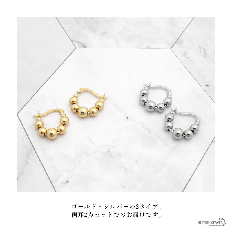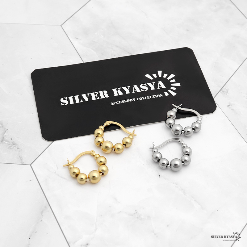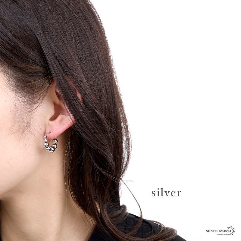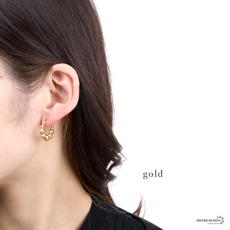 ■球体がフープ上に並び、美しく光を反射をするピアス。ゴールド・シルバーの2タイプから選べます。