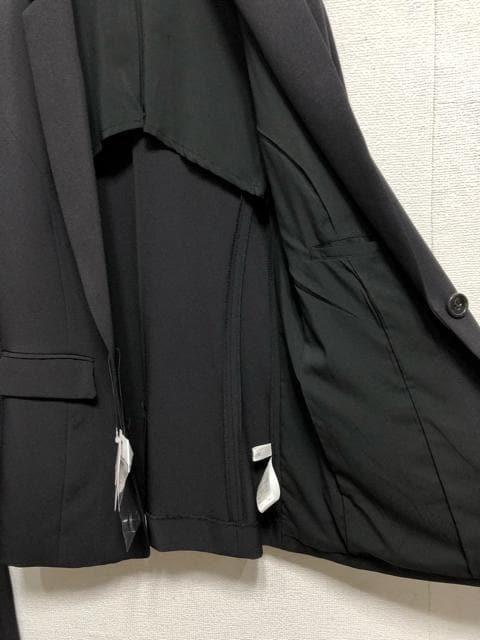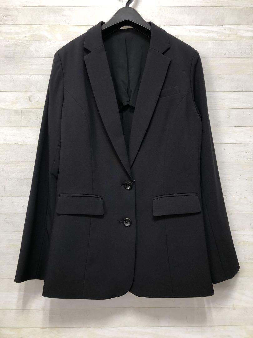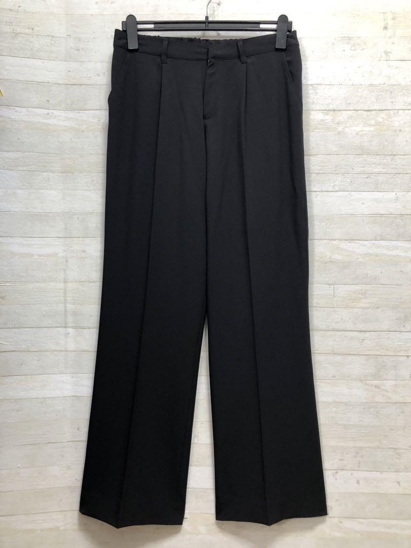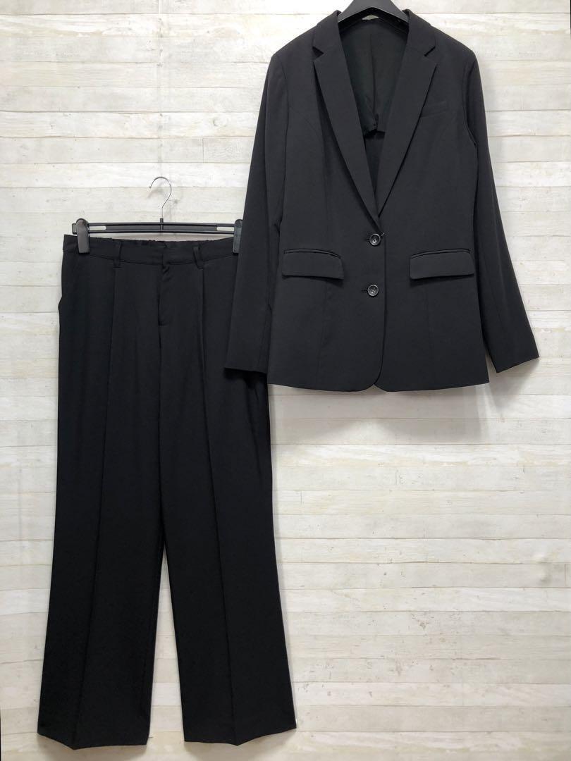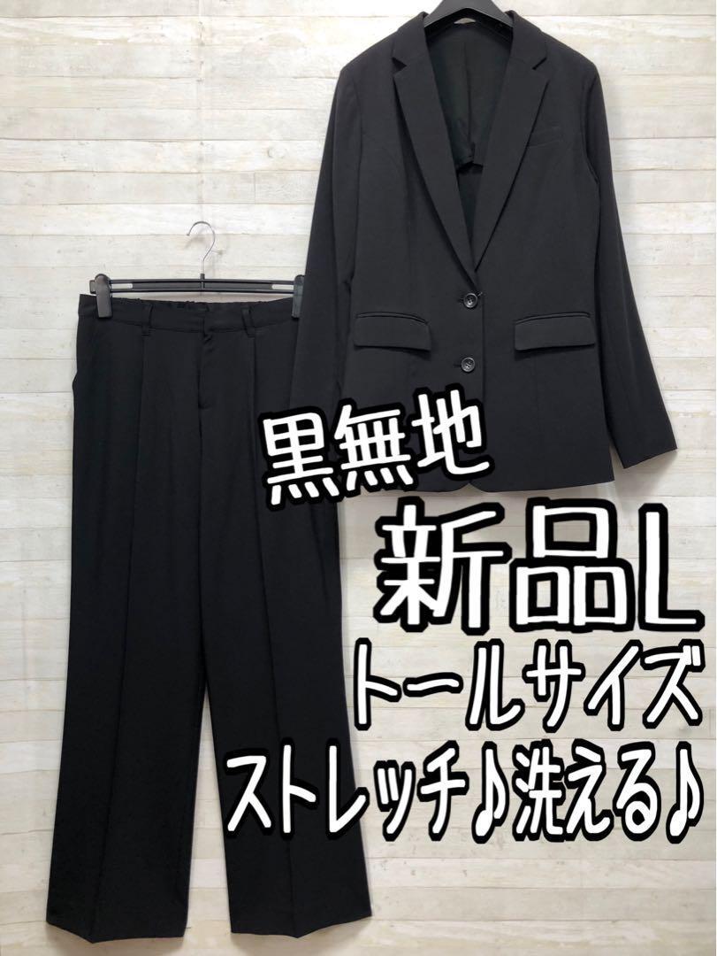 新品☆Lトール黒系無地♪ストレッチ♪ワイドパンツスーツ♪お仕事・通勤〇D397