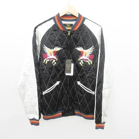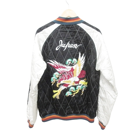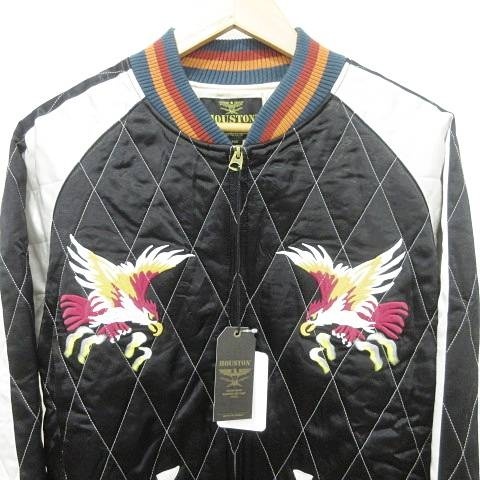 未使用品 ヒューストン HOUSTON 美品 タグ付き キルティング スカジャン Japan ロゴ 刺繍 鷹 バイカラー 中綿 アウター 51393 Lサイズ 黒 ブラック メンズ