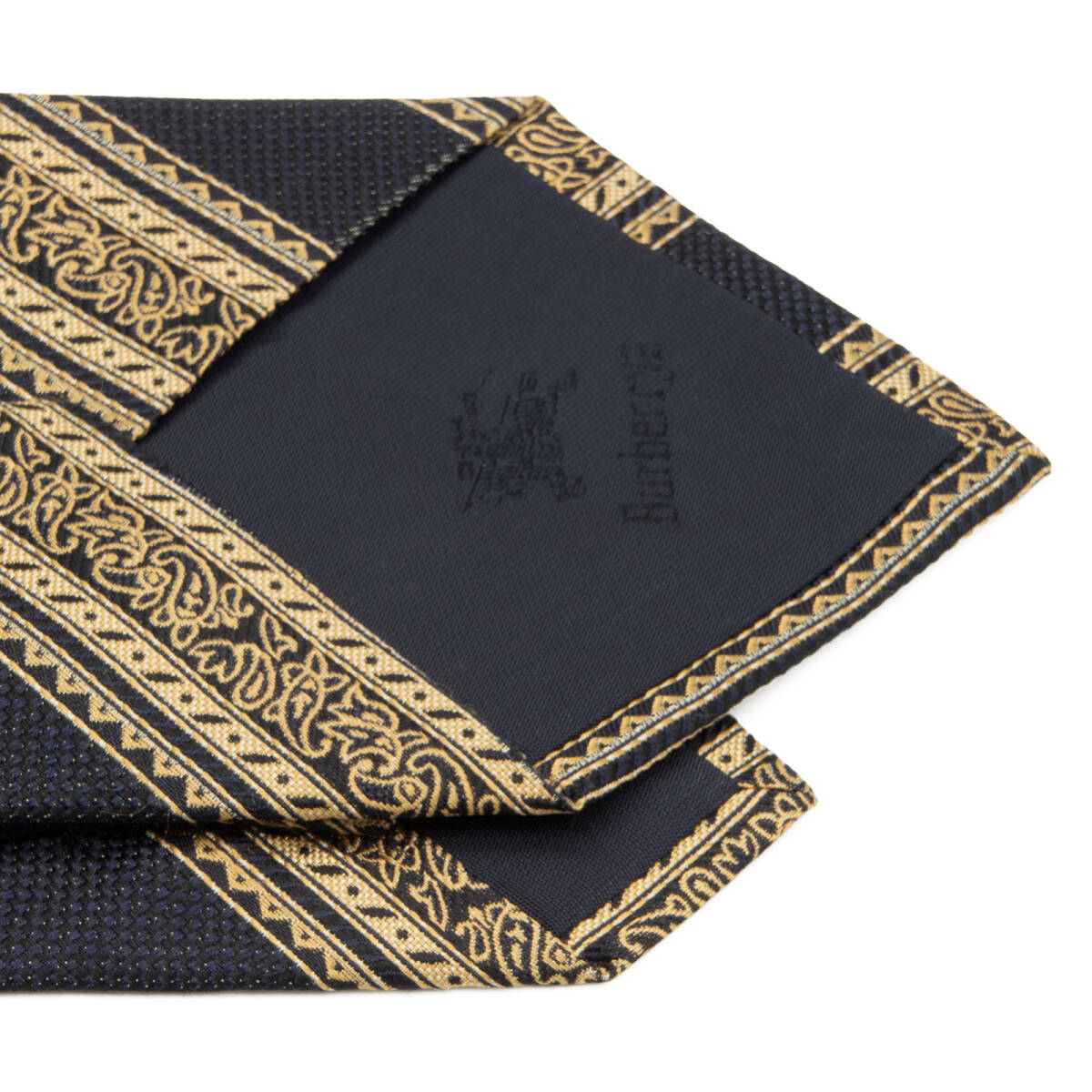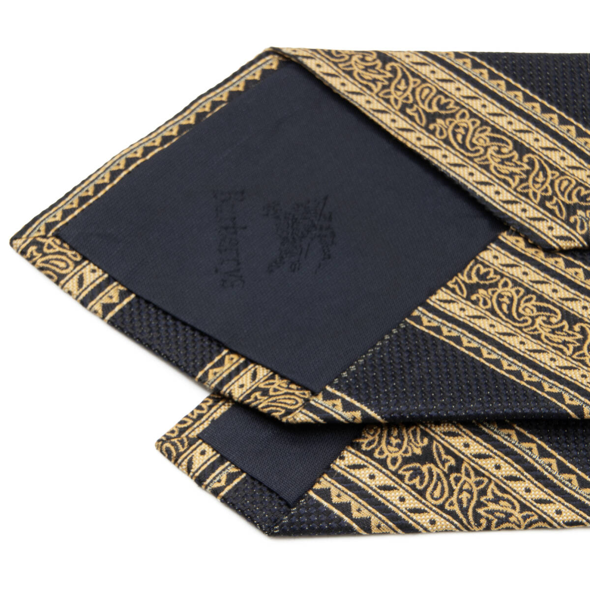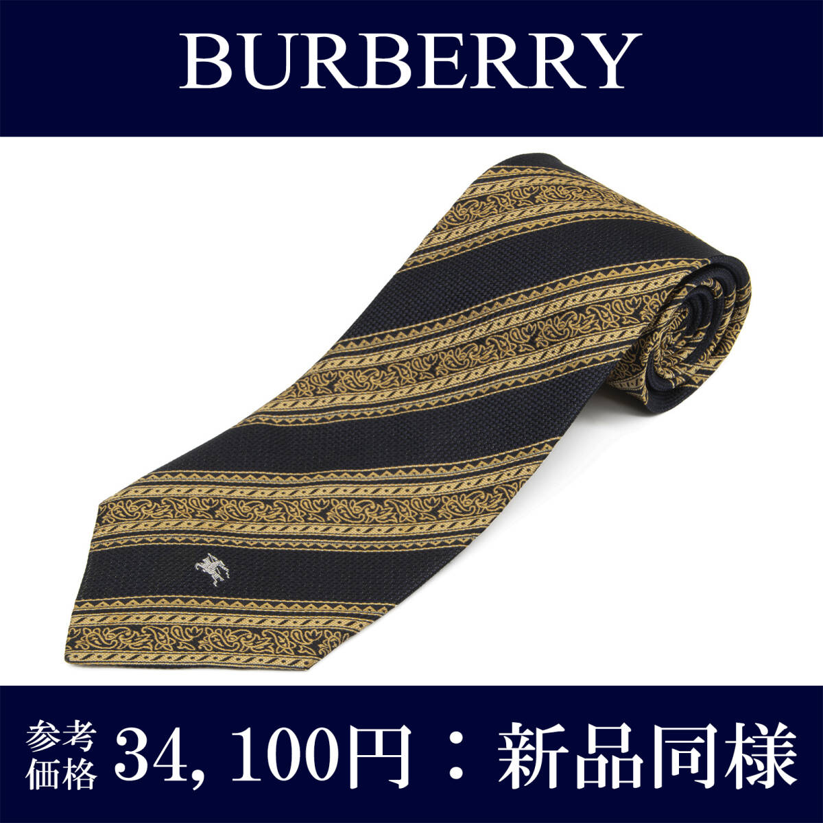 送料無料 バーバリー ネクタイ 新品同様 ジャガードタイ シルク 黒 ブラック ストライプ 馬 ホース ペイズリー マーク おしゃれ 綺麗 N648