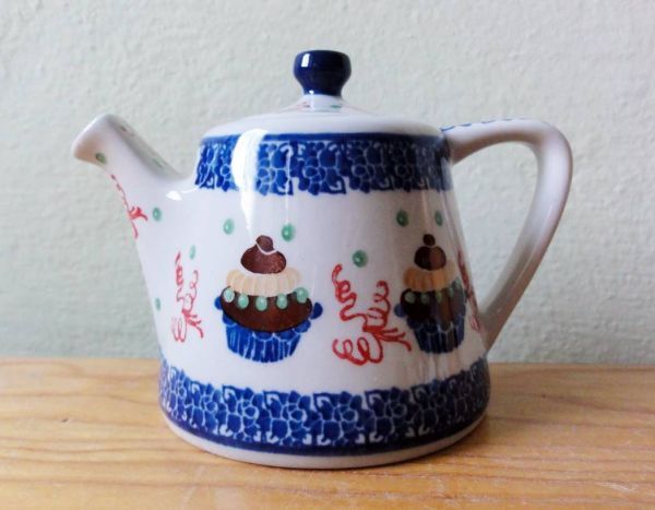 ポーランド ボレスワヴィエツ陶器 チョコカップケーキ柄 ティーポット0.25Lです。
