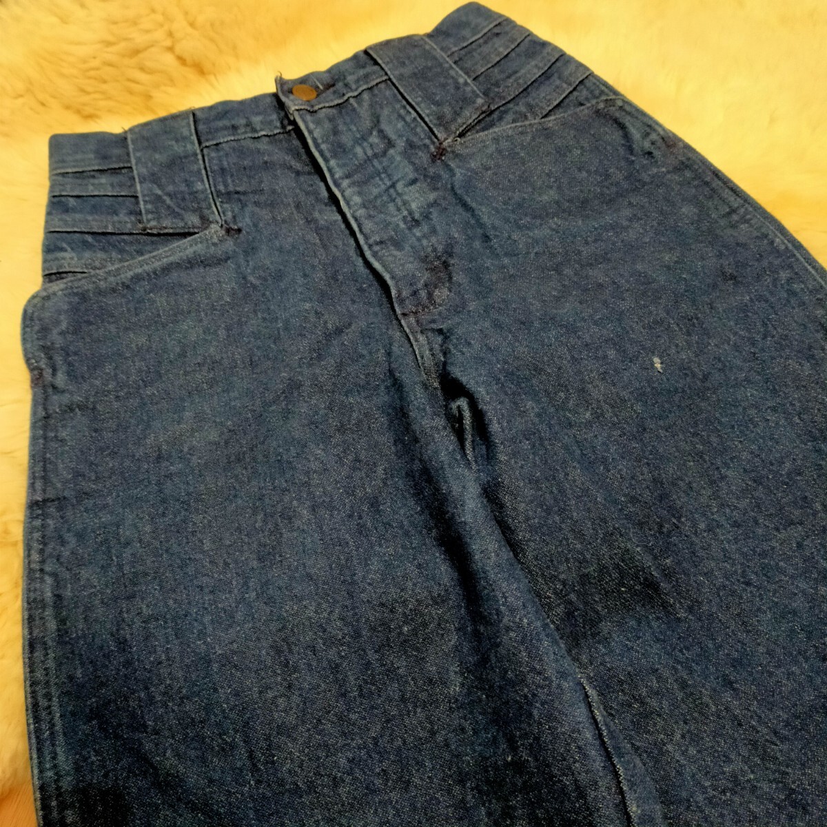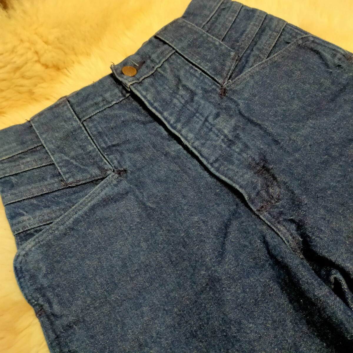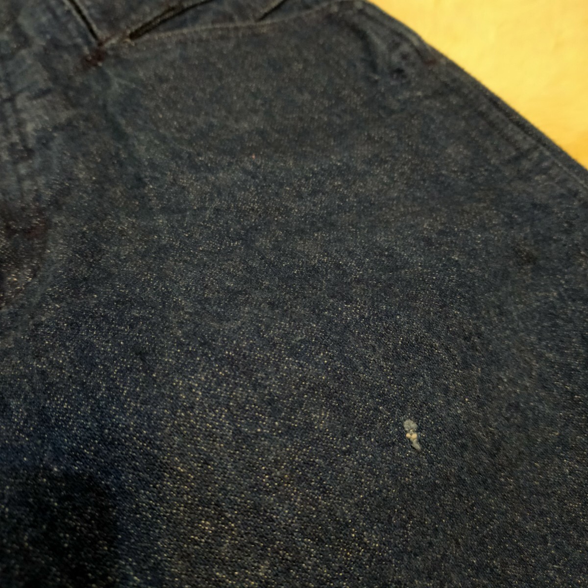 カラーはブルー、テーパードシルエットのハイウエストタイプになっています。