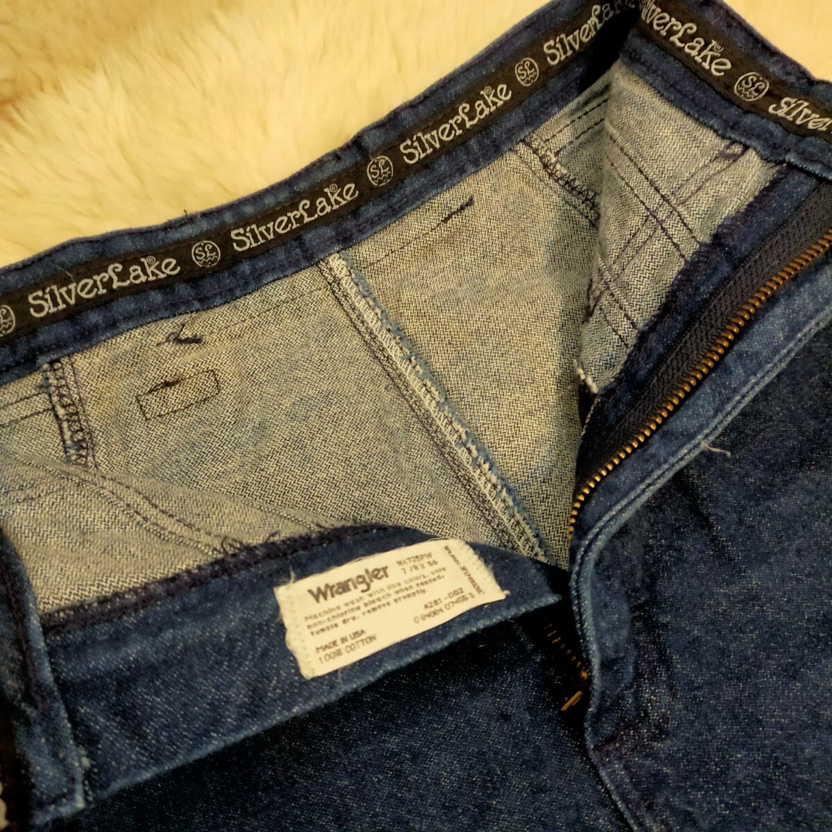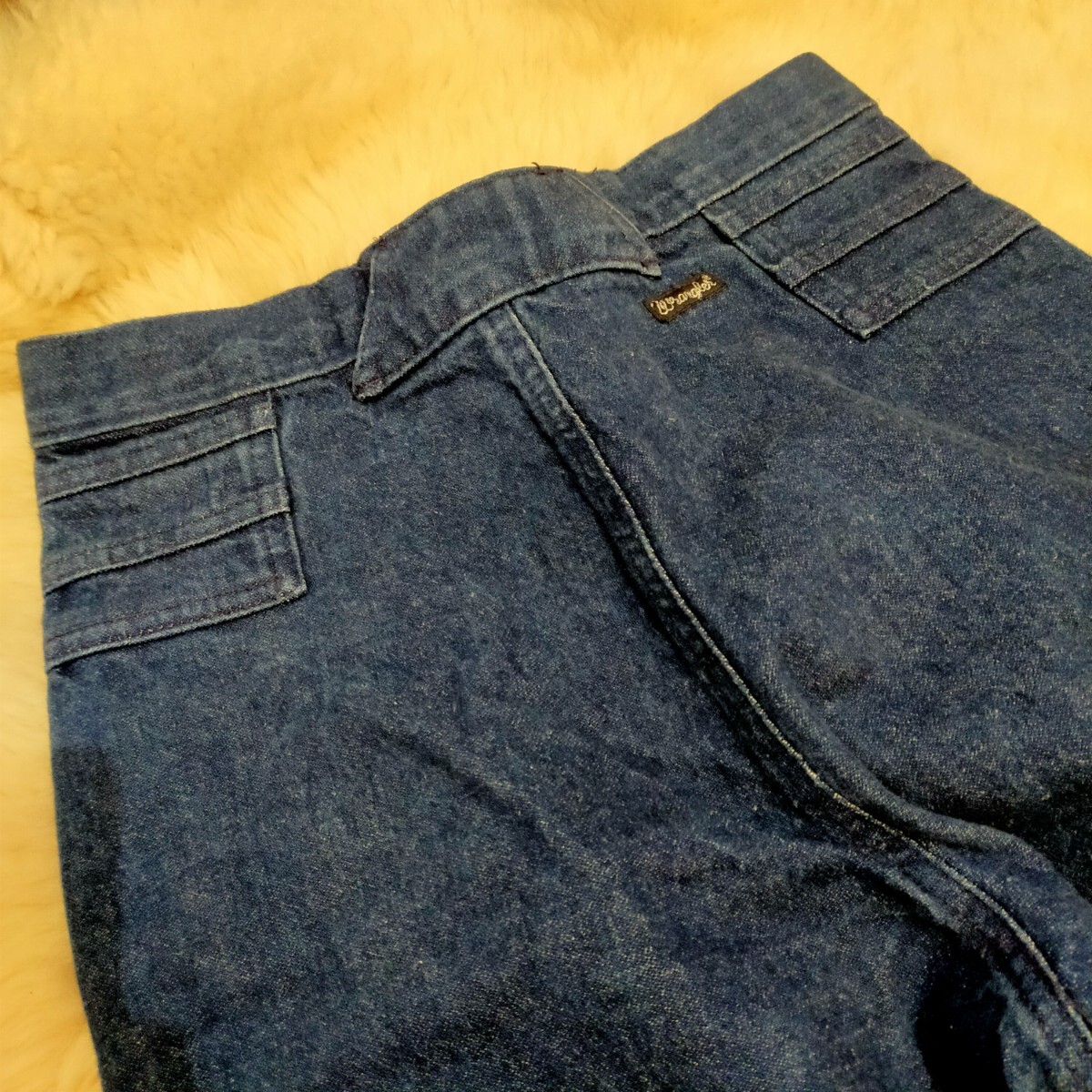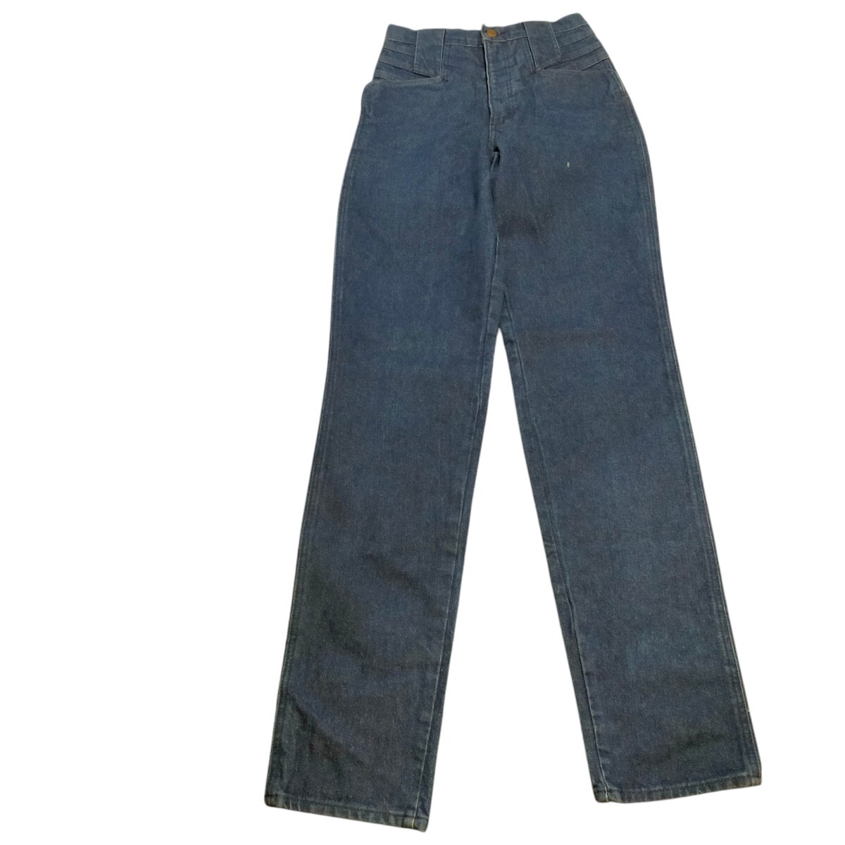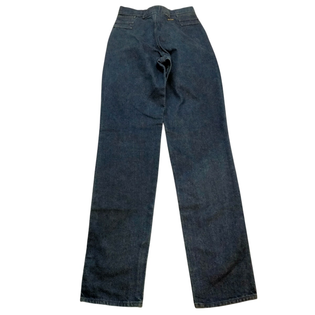 カラーはブルー、テーパードシルエットのハイウエストタイプになっています。