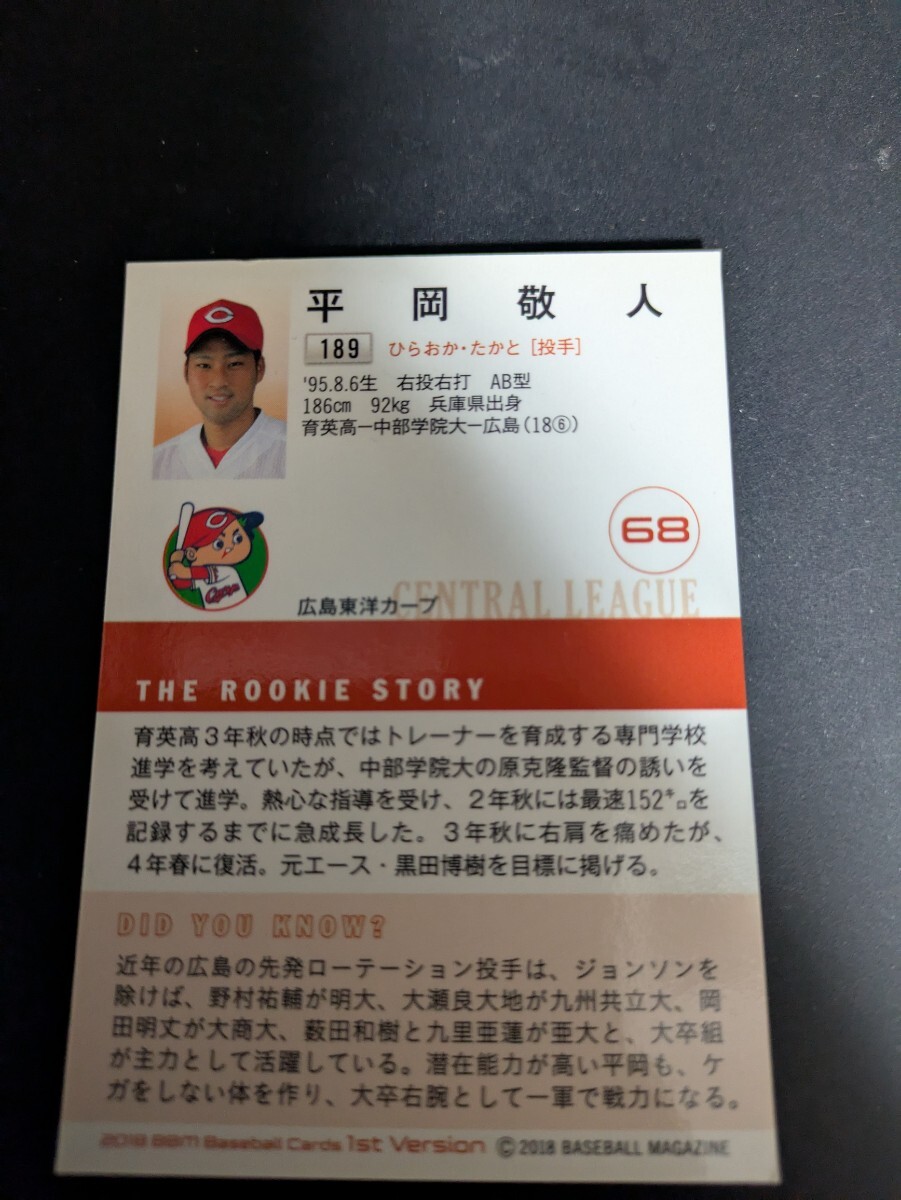 即決★BBM2018 広島カープ 平岡敬人 ルーキーカード