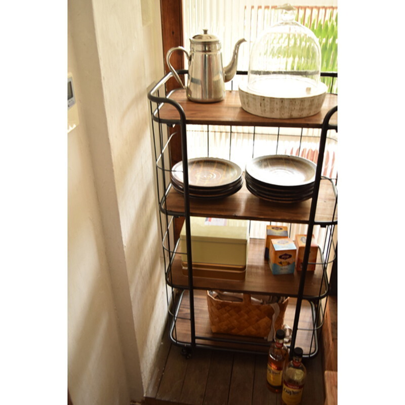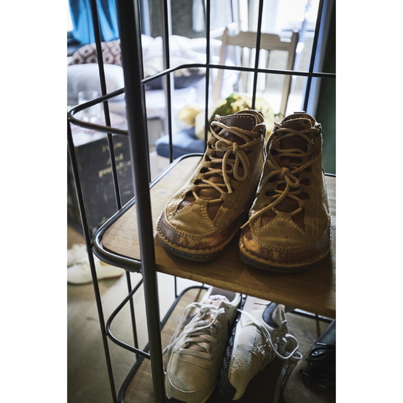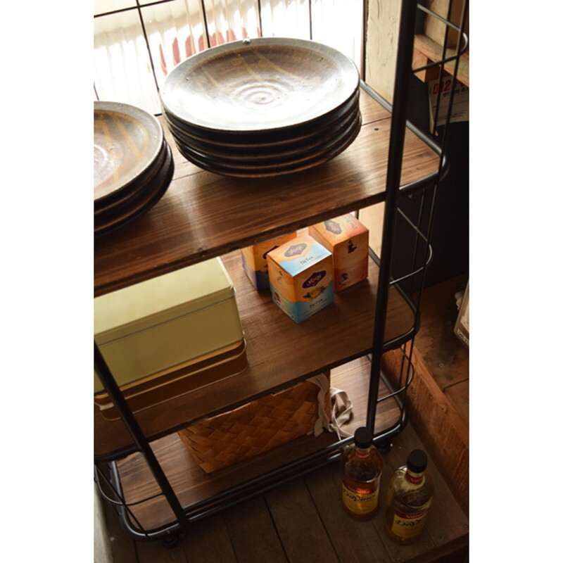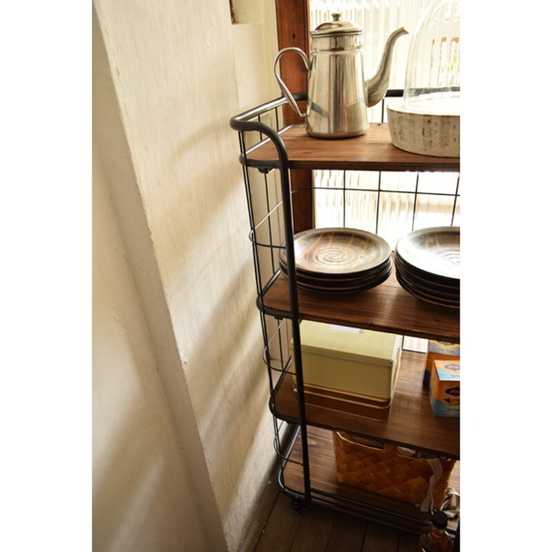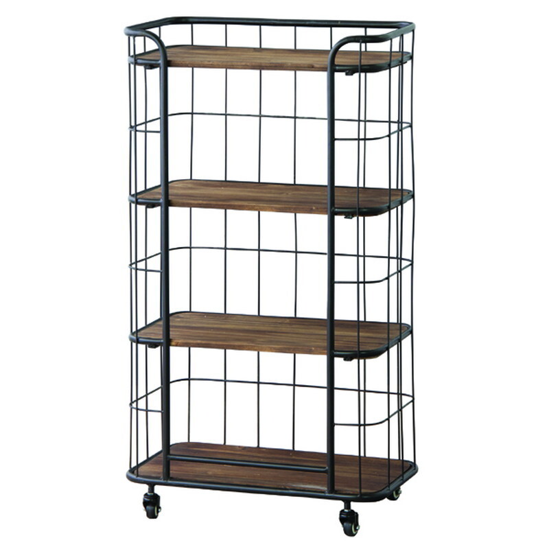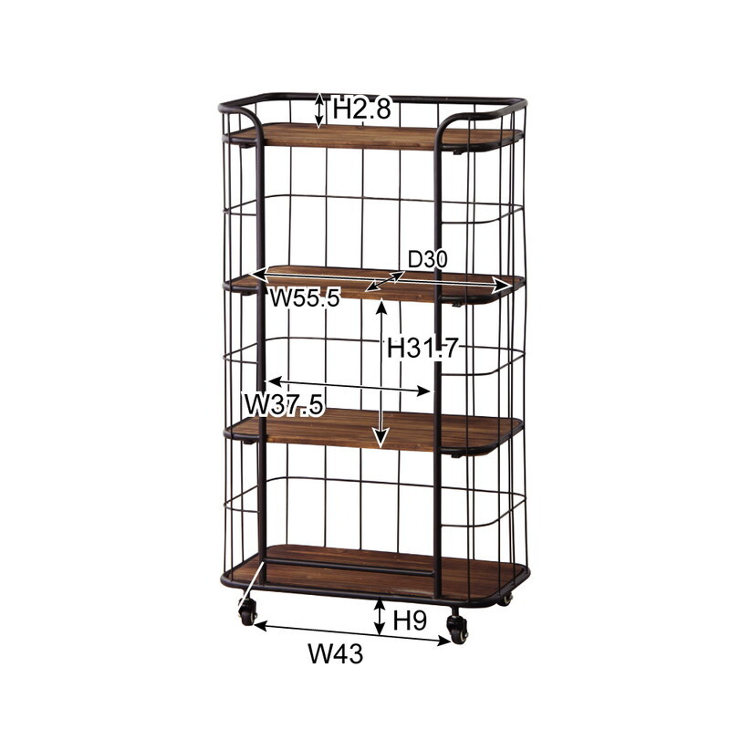 シェルフ 4段 【ブラウン】 天然木(杉) スチール(粉体塗装)