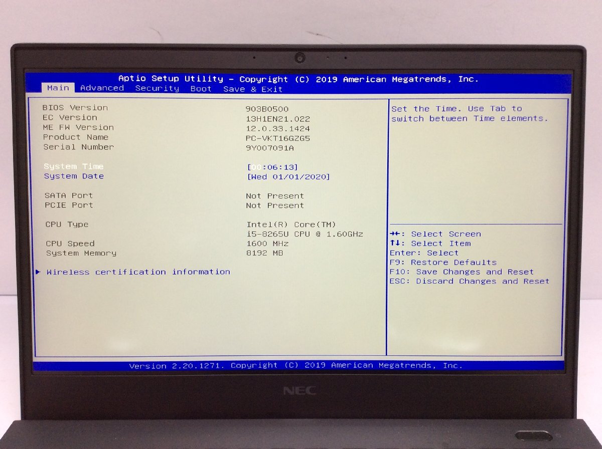 ジャンク/ NEC PC-VKT16GZG5 Intel Core i5-8265U メモリ8.19GB ストレージ無し 【K08659】