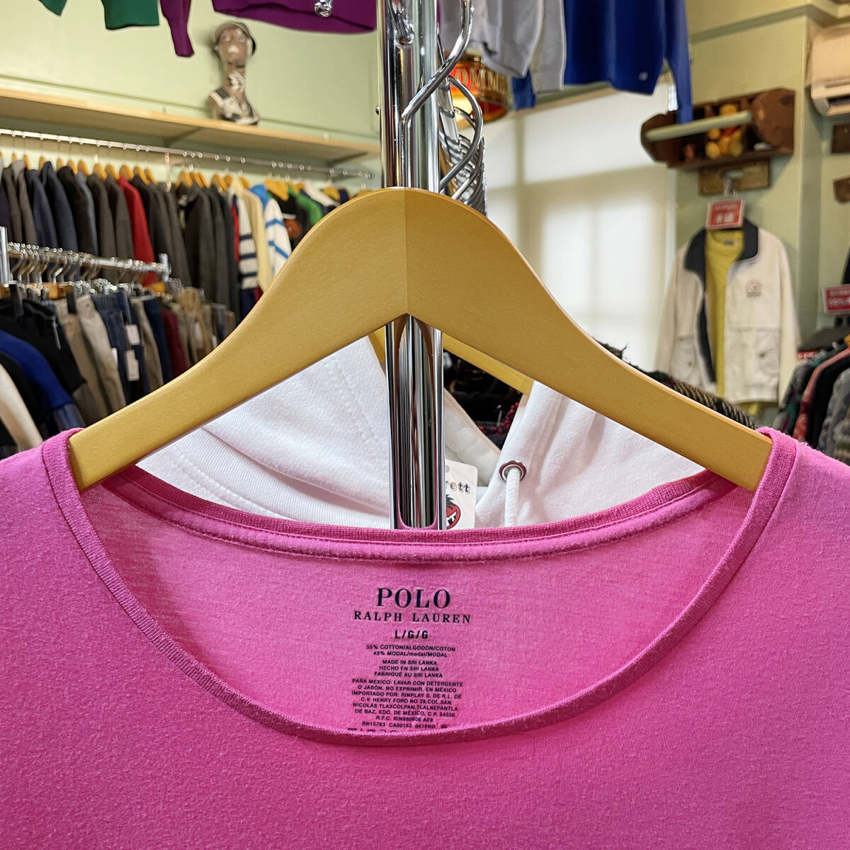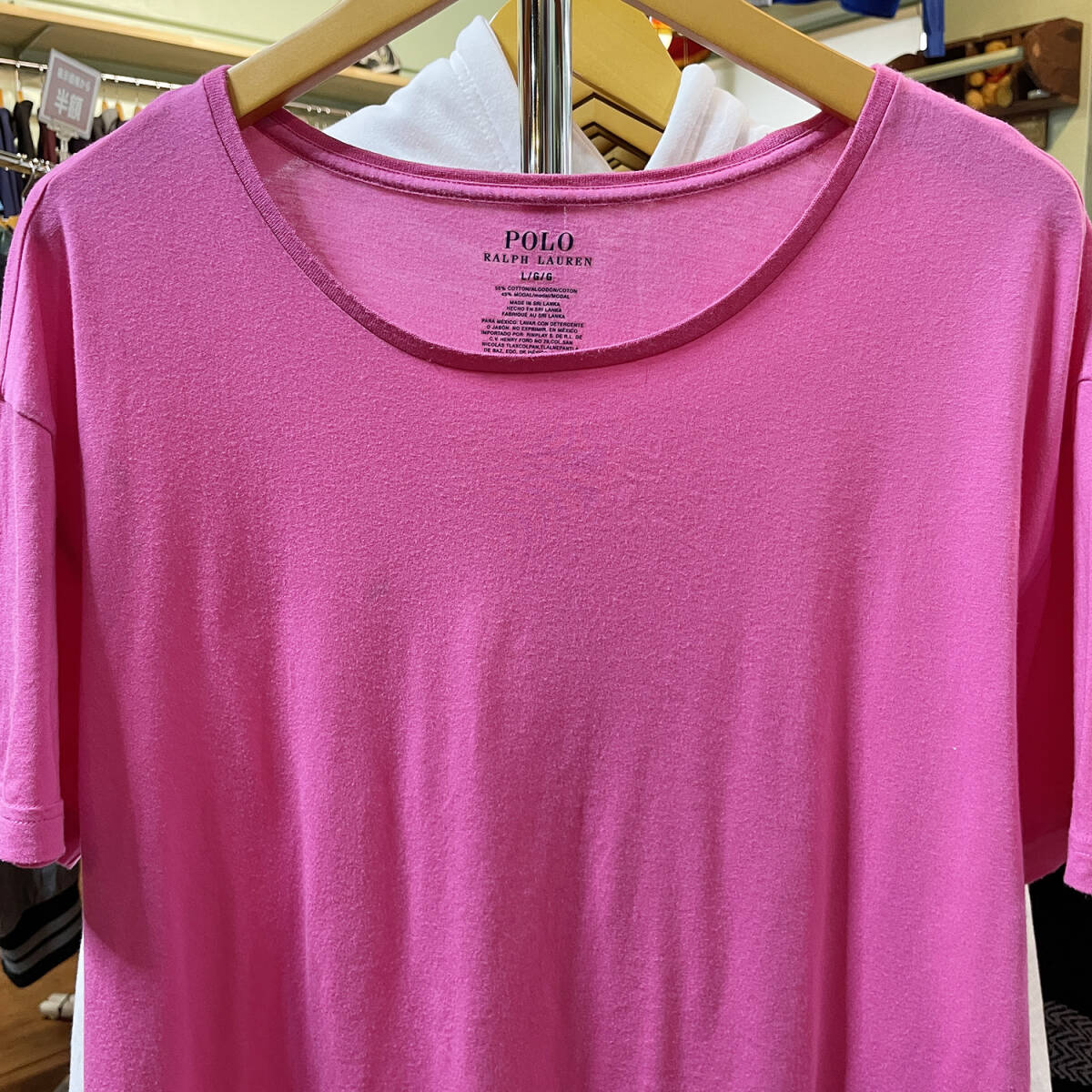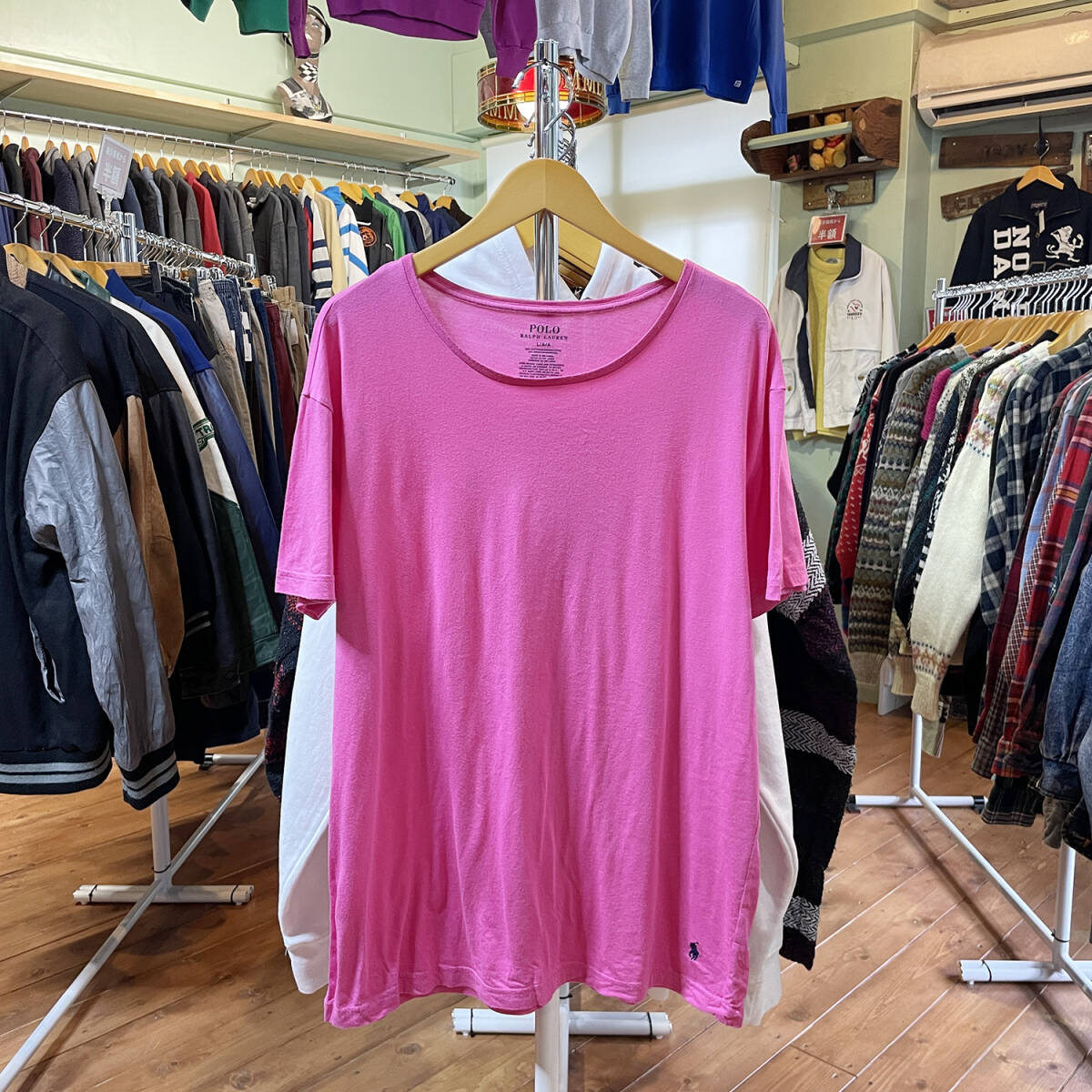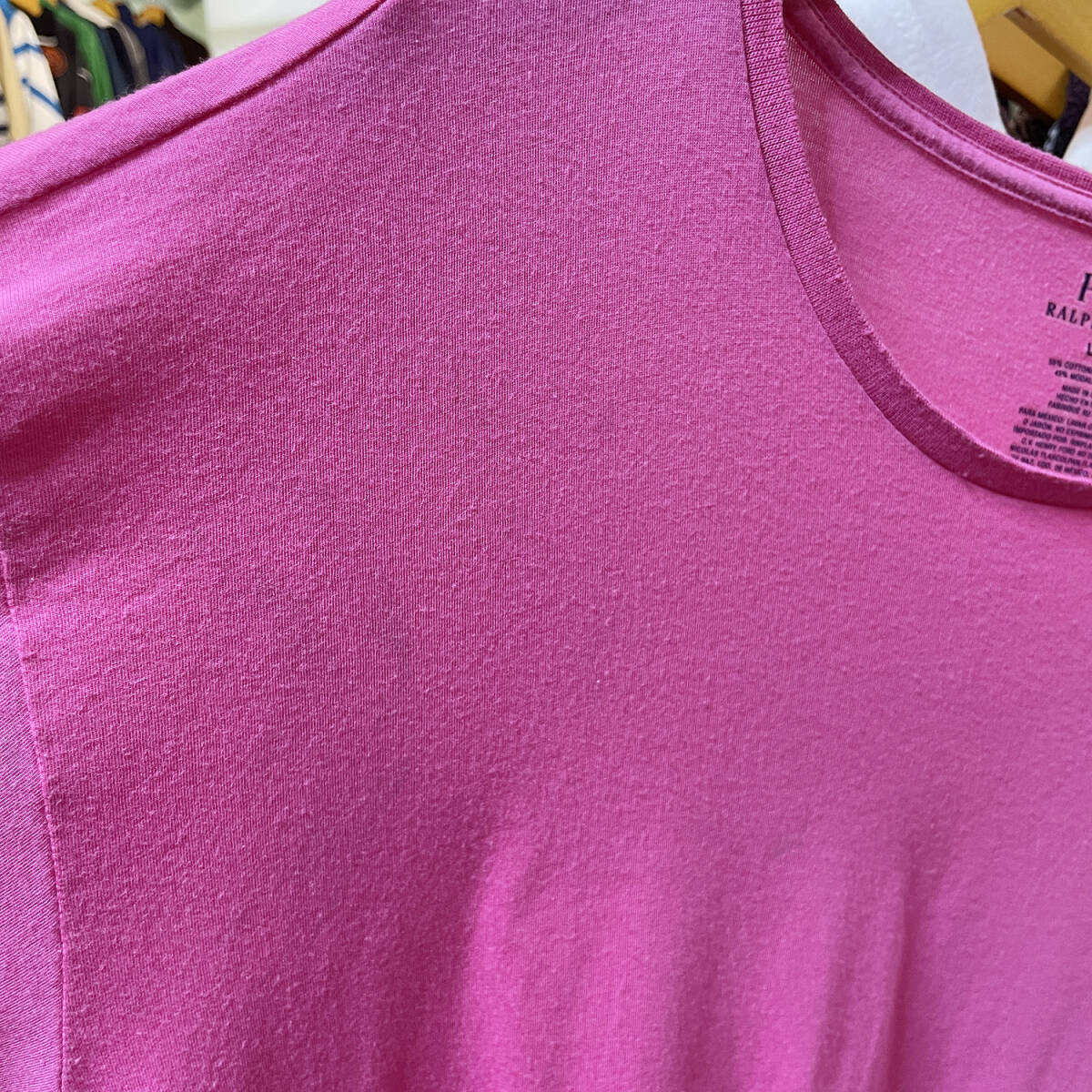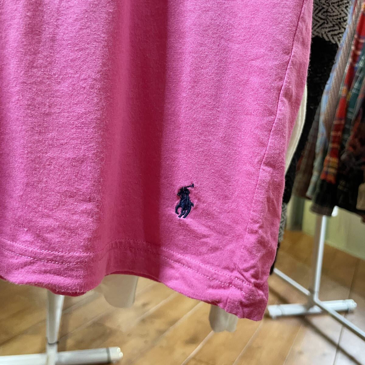 【期間限定SALE】 USA 古着 Tシャツ ポロラルフローレン 裾ロゴ ピンク メンズL 刺繍 BA1936