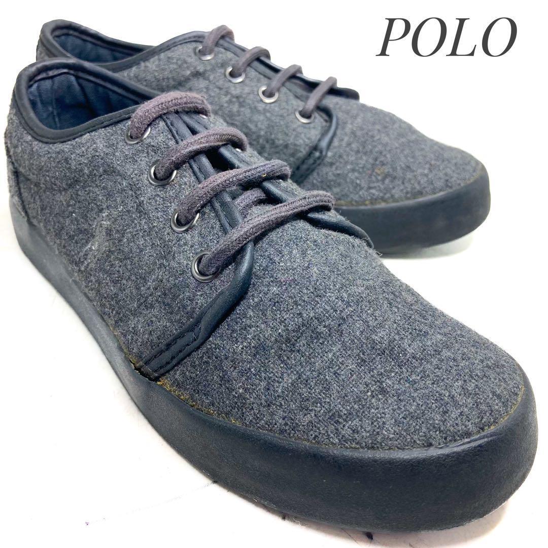 ☆即決・送料無料☆Polo Ralph Lauren ポロラルフローレン キッズ スニーカー グレー 20cm カジュアル 本革 本皮 軽量