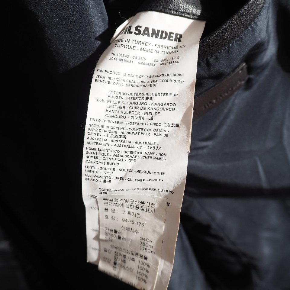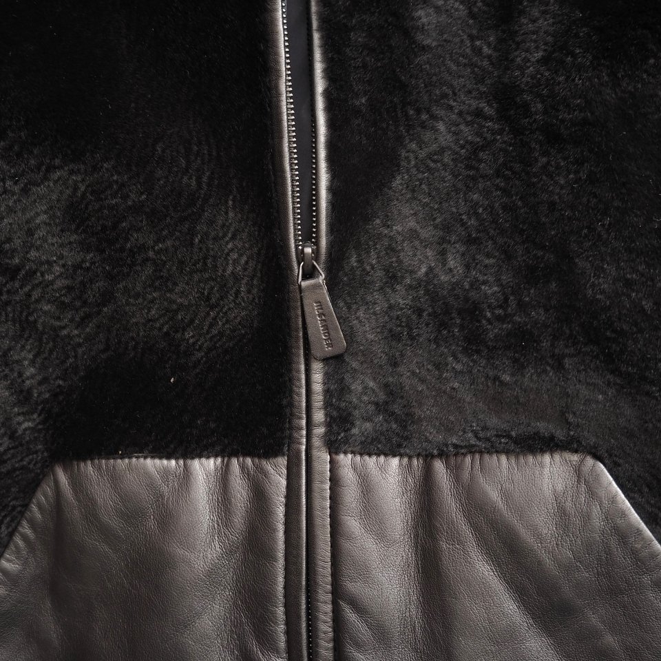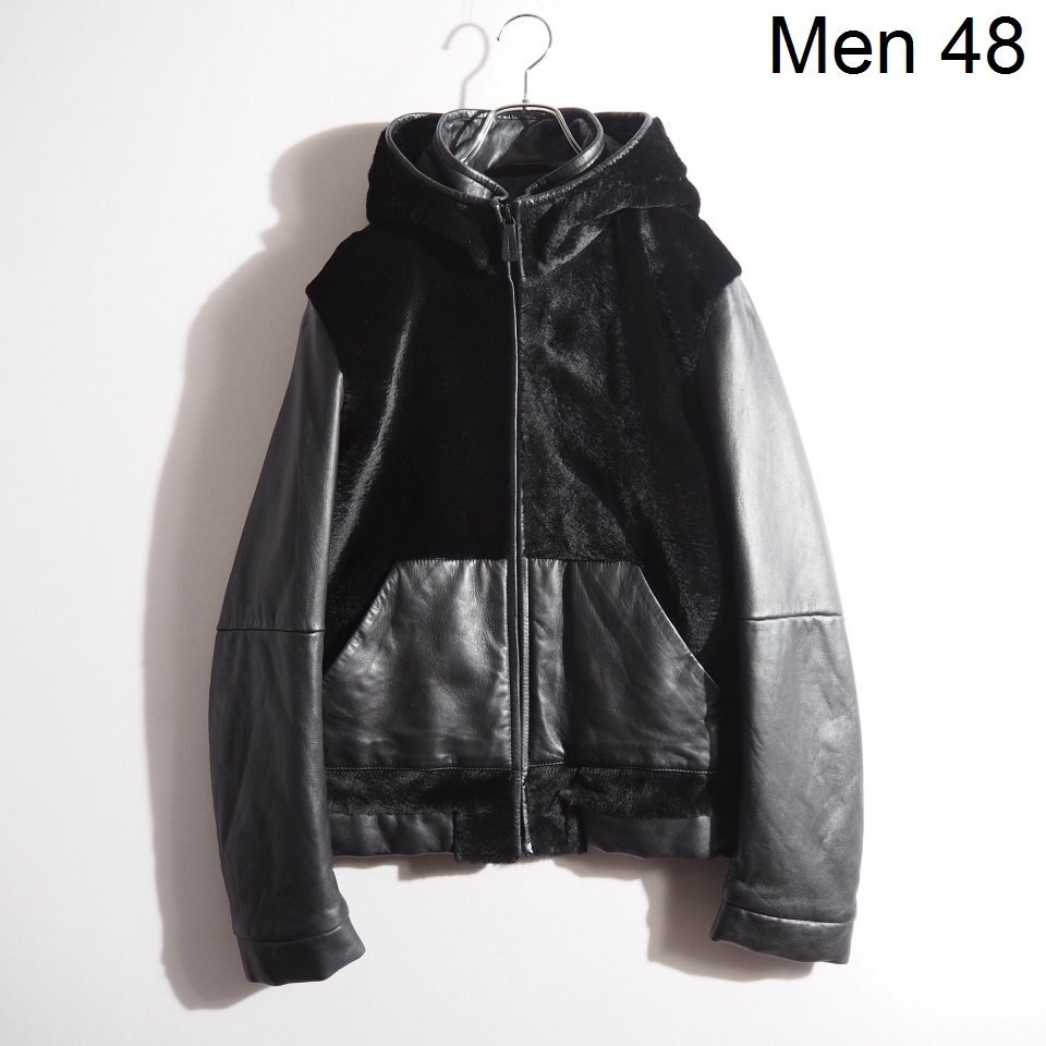 x5925P ▼JIL SANDER ジルサンダー▼ 14AW カンガルーファー付き 中綿 レザージャケット ブラック 48 / フード付き ブルゾン 秋冬 rb mks
