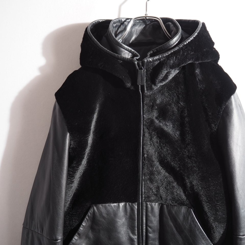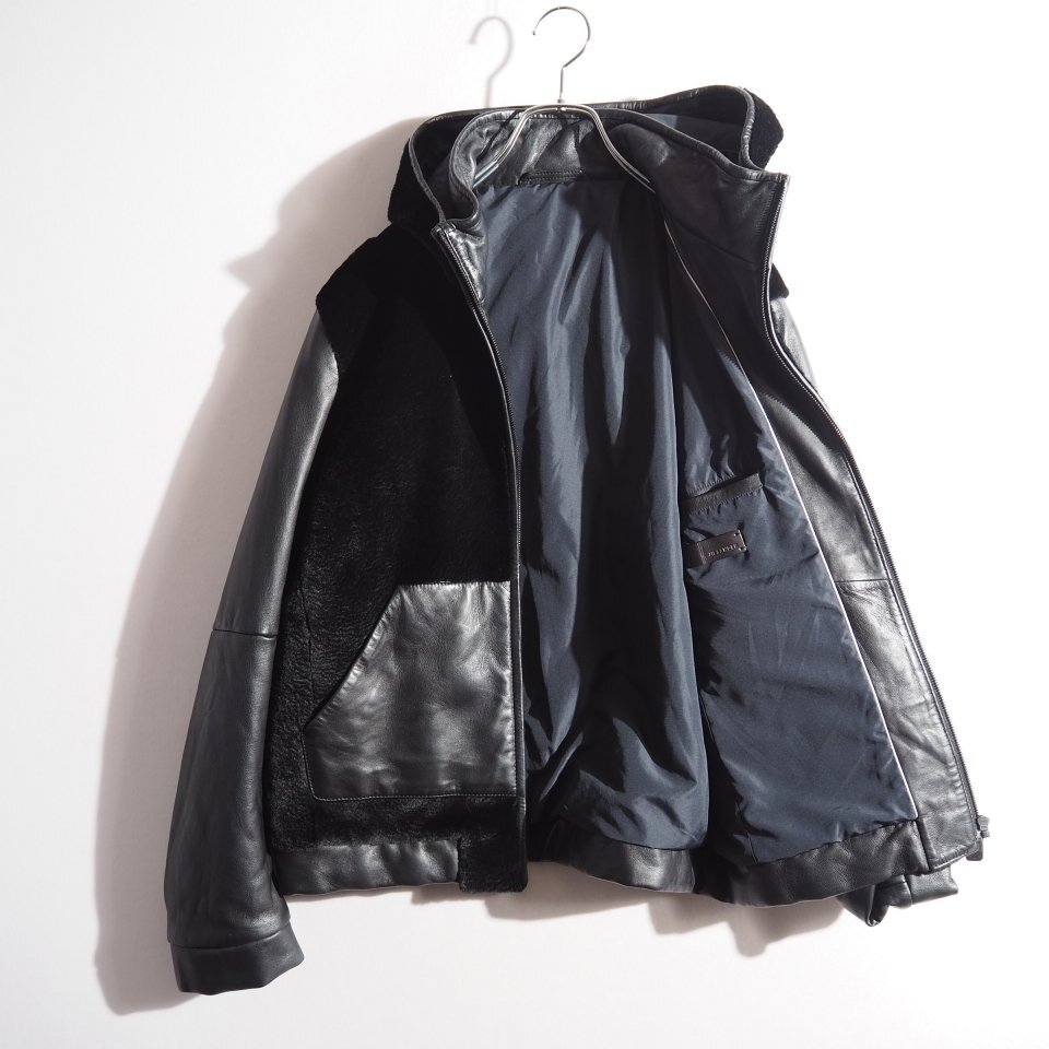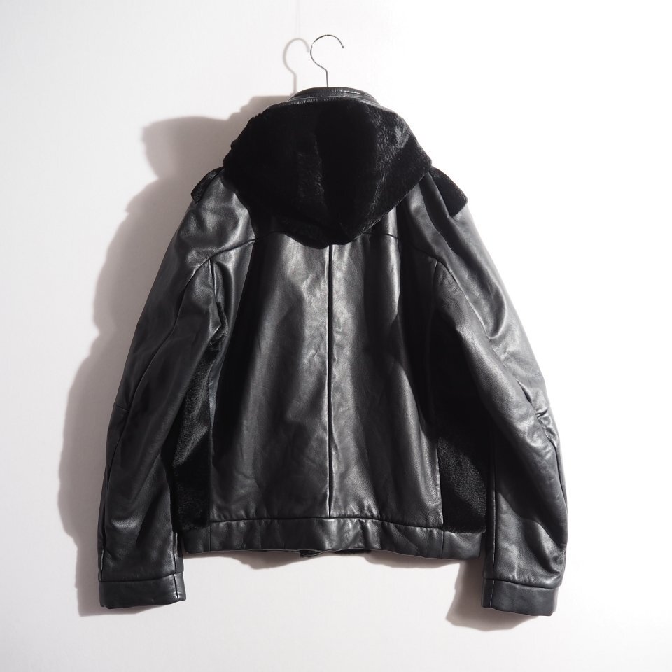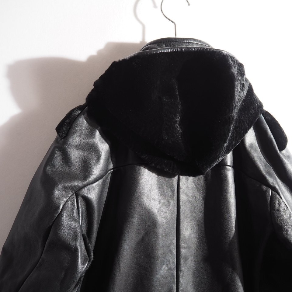14AW カンガルーファー付き 中綿入り レザージャケット ブラック 48