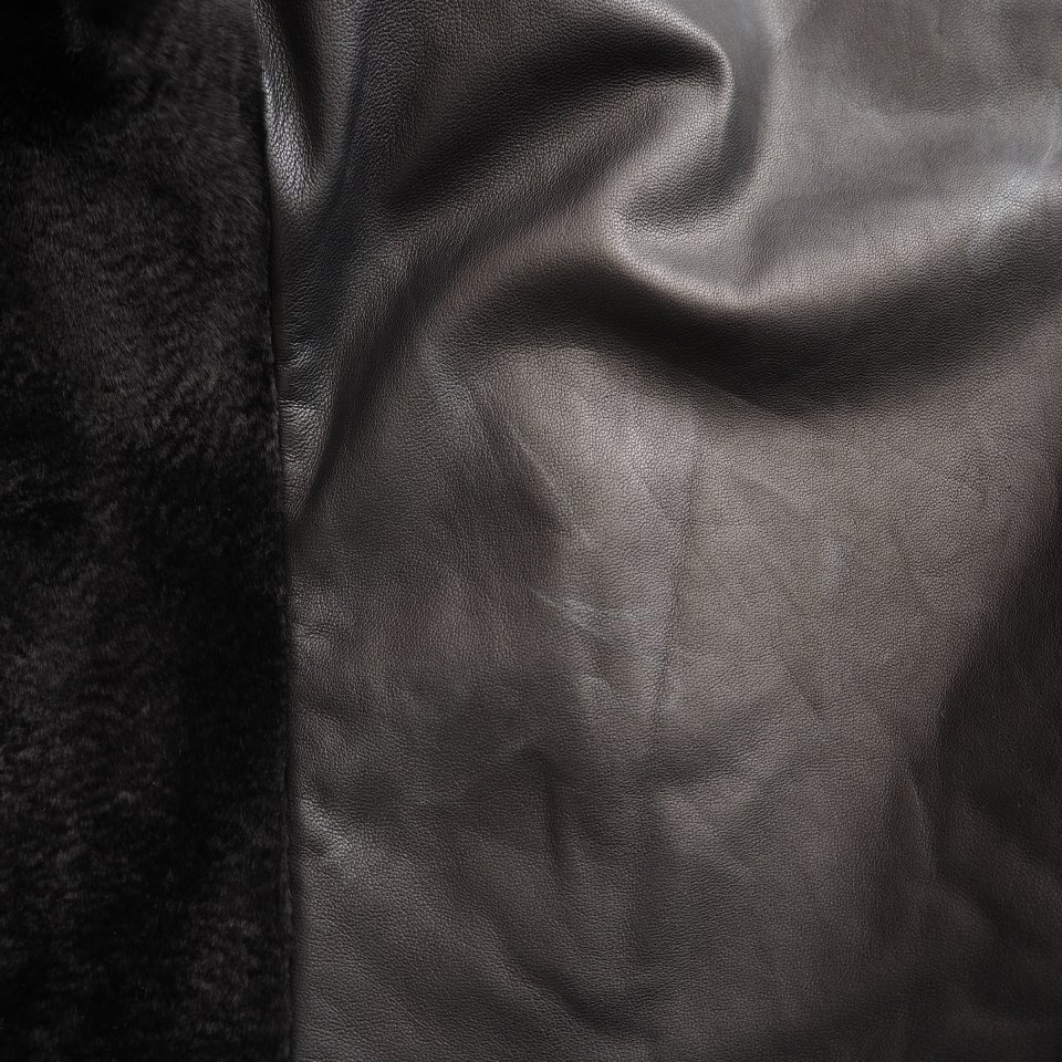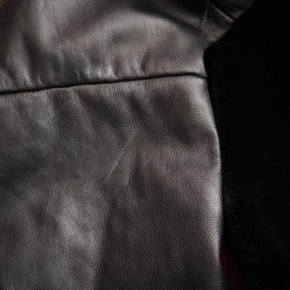 生地 :しっとりとした柔らかいレザー(うすい中綿入り)×短い毛足のカンガルーファー(中綿なし)