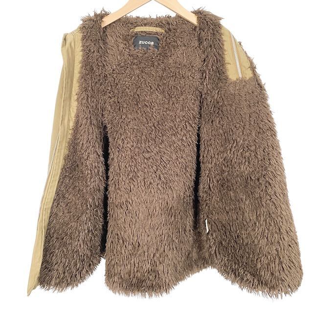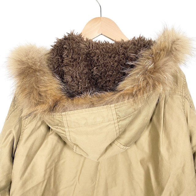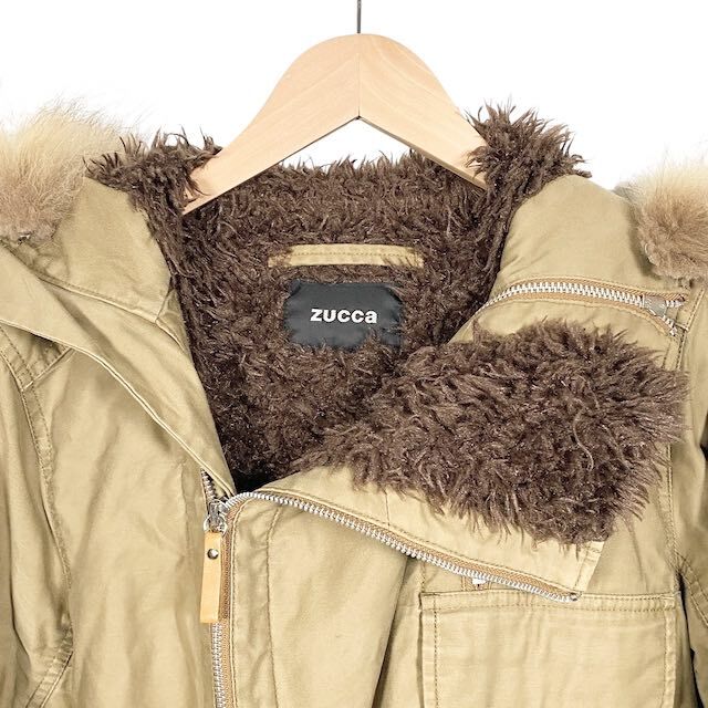 ズッカ zucca 2WAY モッズコート ラクーンファー 毛皮 裏ボア 長袖 袖ファスナー カーキ M レディース