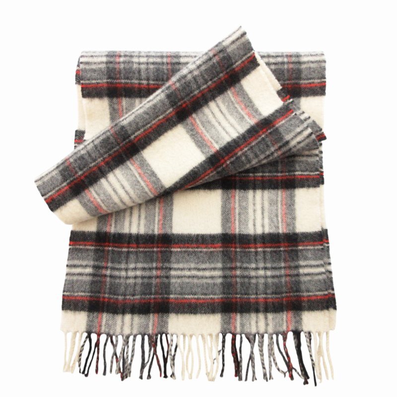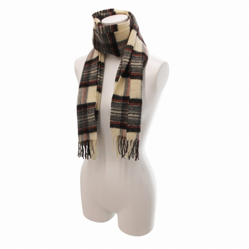 ジョンストンズオブエルガン Johnstons of Elgin マフラー チェック カシミヤ ウール フリンジ スコットランド製 白 ホワイト系
