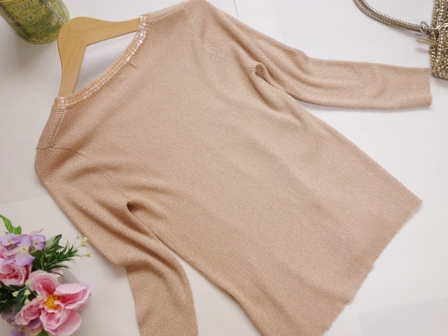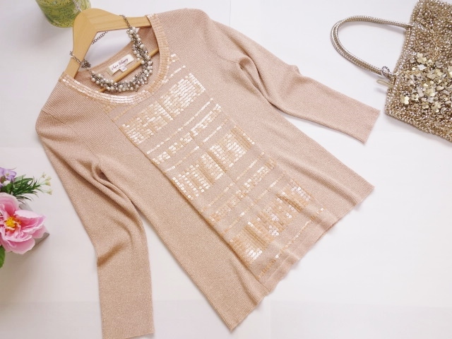 SUPERBEAUTY 大きいサイズ42 スパンコール装飾ニット | |||||