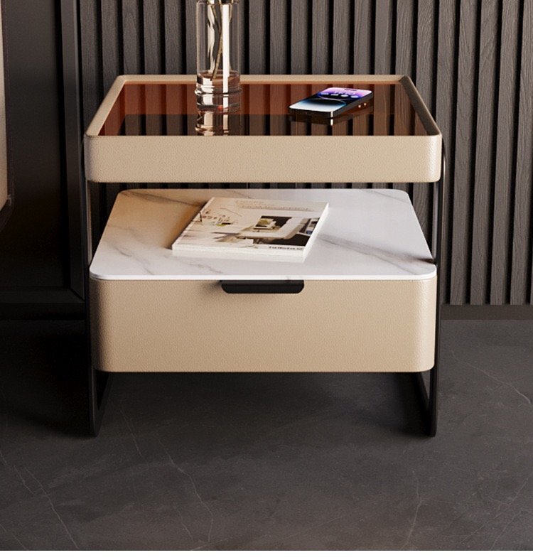 製品の説明:このスマートなナイトスタンドは、モダンなミニマリスト デザインと実用的な機能性を兼ね備えており、現代的な寝室に最適です。強化ガラス製の天板は見た目が美しいだけでなく、傷や擦れに強いよう特別に加工されているため、お手入れも簡単です。指紋ロックが装備されており、プライバシーを確保し、便利なアクセスを提供します。キャビネットには引き出しが付いており、本、リモコン、その他の小物をたっぷり収納できます。頑丈な金属フレームと無垢材構造を組み合わせることで、抜群の安定性と耐久性を実現し、このナイトスタンドは単なる家具ではなく、寝室の信頼できる相棒になります。装飾目的でも機能目的でも、このナイトスタンドはあなたの空間にスタイリッシュなタッチを加えます。製品仕様:製品名: ミニマリスト ナイトスタンド モダン ナイトスタンド 収納 ナイトスタンド 引き出し付き ナイトスタンド ベッドルーム サイドテーブル素材: 指紋ロック解除 + 強化ガラストップ + PEレザー + 金属フレーム + 無垢材引き出し色: 温白色、クリームホワイト、ライトグレー、抹茶グレー、インディゴブルーグレー、ミディアムグレー、ライトブラウン寸法: (長さ x 幅 x 高さ) 50x40x51CM / 19.7x15.7x20.1IN適用シナリオ: リビングルーム、寝室、書斎、ラウンジ、子供部屋、ゲームルームなどに適しています。ヒント:1.家具の性質上、寸法は手動で測定されており、1?3cmの誤差は正常です。2.モニターの違いにより撮影時の設定や照明により、正確な色については実際の商品をご参照ください。ご理解のほどよろしくお願いいたします。3.ご質問がございましたら、ご連絡ください。24時間以内にご返答し、ご満足いただける解決策を提供します。